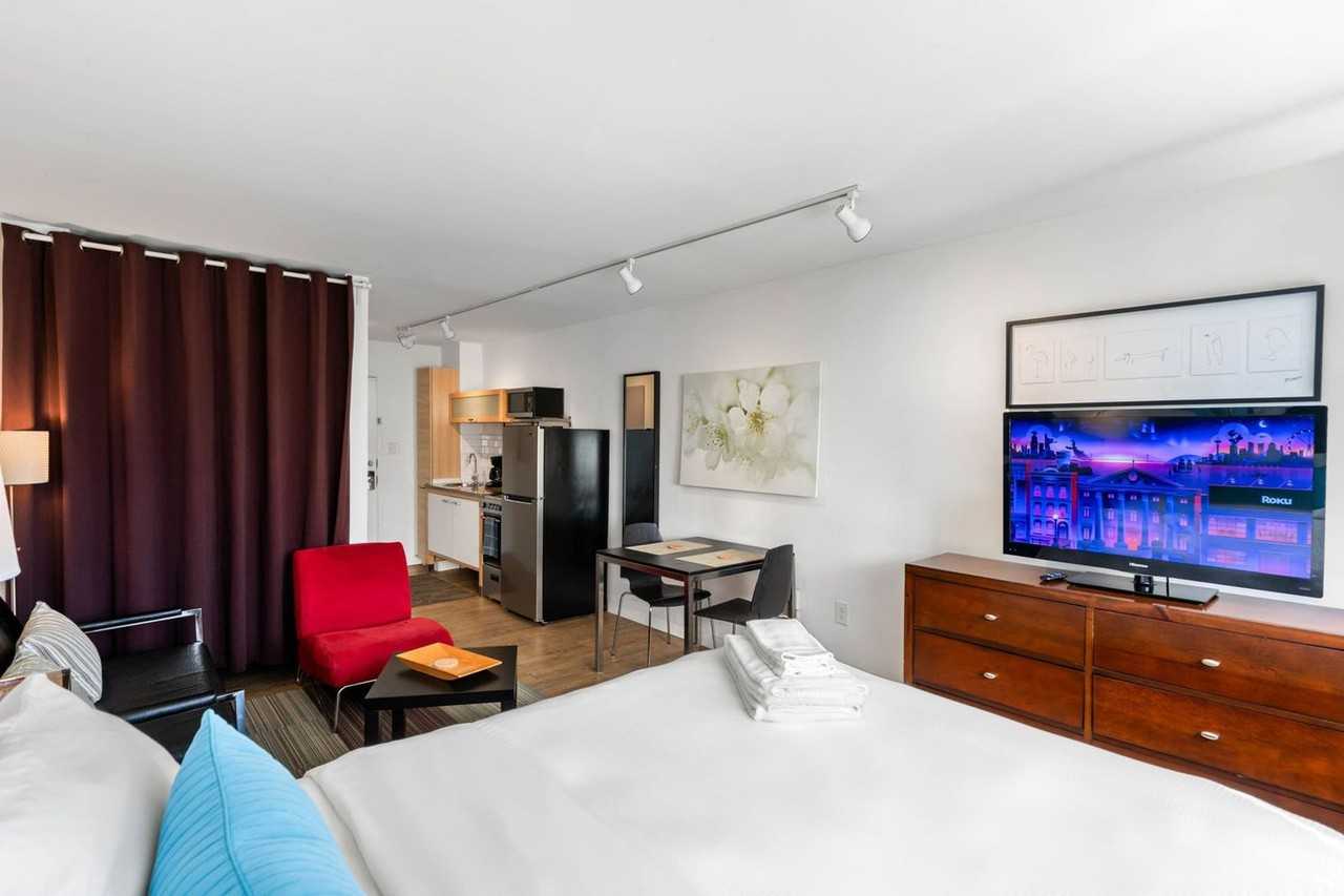 Feel at home in this chic premium studio apartment, located in a convenient Buckhead/Midtown Atlanta neighborhood, just one block off Peachtree Street. This studio is fully equipped with modern furnishings, premium bedding and linens, and everything you need in a kitchen to dine at home. It's ideally suited for business travel or relocation plans. Enjoy the convenience of weekly cleanings with linen and towel change-outs, utilities, HDTV, complimentary Wi-Fi, and one free parking space. Up to two small to medium-sized pets are welcome with an additional $35 monthly pet cleaning fee, or a one-time fee if your stay is less than 45 days. Pet fees are charged separately after booking. Located in the most convenient Buckhead/Midtown Atlanta neighborhood, this apartment is one block off Peachtree Street, with easy access to Midtown and Buckhead. Guests must check-in online using the Virtual Front Desk at least 3 days prior to arrival, or at the time of booking if it is less than 48 hours from the arrival date. Arrival instructions and property access will not be provided until the Check-In & Lodging Agreement are complete and information provided is verified. The minimum age to book a reservation is 21 years old, and age will be verified after booking. A valid credit card for identity verification and a picture of your government-issued photo ID, as well as a “Live Selfie” are required. The trusted partner reserves the right to perform identity verification and criminal background checks on all guests prior to, during, or after a stay and may terminate a reservation for any reason without penalty to the partner. You are responsible for any damage the pet(s) may cause, and an additional deposit may be required based on breed, weight, and age. Please make necessary arrangements so that your pets do not disturb other guests.