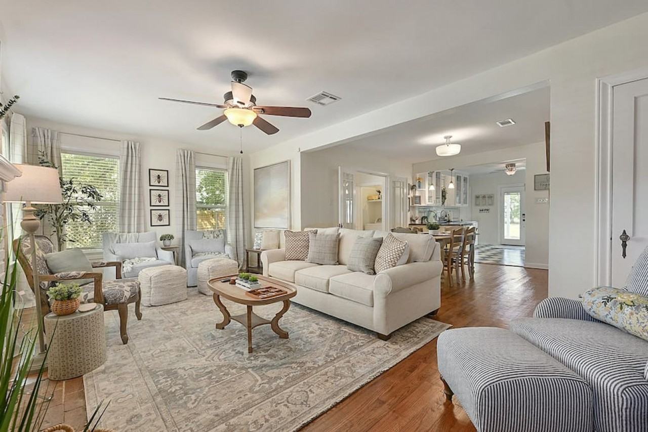 Feel at home in Bluebird Cottage, a charming getaway in Bryan-College Station, just minutes from Texas A&M, Kyle Field, H-E-B, Big Shots Golf, and Century Square. This thoughtfully updated 1944 cottage blends vintage charm with modern comfort and features 2-bedrooms plus a bonus room to sleep up to 7. The cottage features a living room with a 55” smart TV, couch, swivel chairs, bench seating, board games, and blackout curtains. The kitchen is fully stocked with stainless appliances, a gas stovetop with griddle, cookware, spices, blender, toaster, slow cooker, and a coffee bar with a Keurig and French press. There is also a laundry area with a washer, dryer, iron, and steamer. Enjoy the private backyard and patio with a 6-person hot tub, outdoor dining table, custom grill, and games like cornhole, ladder ball, and bocce. Bluebird Cottage is the perfect home base to explore all that Bryan-College Station has to offer. Take your shoes off before entering to protect the original 1944 wood floors. Events may be approved on a case-by-case basis for an additional fee of $300 and an additional security deposit. Glitter or anything sticky is not permitted in the house or on the walls; a minimum $500 fine will be charged for repairs to the sheetrock. Be careful with the original and delicate door handles. Trash goes out on Thursday; place the can on the street. Be extra careful of the trees in the driveway. No smoking is allowed. Pets are not allowed without express permission and a paid fee. Early check-in and late check-out are not allowed without express permission and a paid fee of $50 per hour. Bedroom 1 includes a desk, chair, and USB charging.