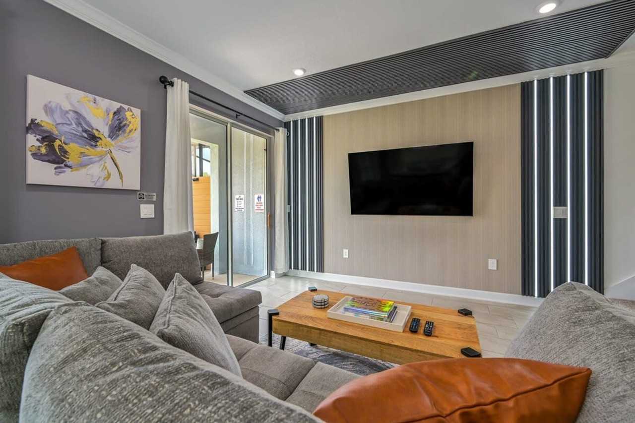Feel at home in this brand-new corner lot vacation property located in Storey Lake, backing onto a serene pond with no rear neighbors. Just steps away from the newly built clubhouse, this home is ideal for families, whether for large or small gatherings. Located only 7 miles from Disney and a short drive to Universal, SeaWorld, and other Orlando attractions, this property offers a prime location. Central Florida's top-rated golf courses are within a 10-minute drive, and the premier shopping corridor, including the famed Millennia Mall and The Loop, is nearby. The world-renowned town of Celebration, inspired by Disney, is also close by. Storey Lake is a 25-minute drive from Orlando International Airport, and Central Florida's famous coastal region is only a short drive away, offering access to the Atlantic Coast and the Gulf Coast within an hour. Be among the first to stay in this modern vacation rental featuring unique theme rooms that promise wonderful family memories. The home offers Moana and Mickey Mouse themed rooms, a covered backyard, and a lanai perfect for entertaining and capturing family photos. This spacious home features 5 bedrooms and 4 bathrooms, an open concept family and dining room, and a private screened-in lanai with a pool and TV. It comfortably accommodates up to 14 guests. On the main floor, there is a queen bedroom sharing a bathroom with a Moana themed bedroom with two full beds. Upstairs, find a king master bedroom suite, a second king suite with a private bathroom, and a Mickey themed bedroom with a bunk bed featuring a full and two twin beds. All bedrooms are equipped with a 55” smart TV. For your convenience, the home includes a laundry room with a washer and dryer, free WiFi, free parking, and a welcome package with bathroom and kitchen essentials. The Storey Lake Resort is a haven of family fun, situated around a scenic lake with a variety of water amenities and activities. The Hideaway Club features a large pool with a lazy river, two waterslides, and a children's splash pad. Relax in the spa or sunbathe on the terrace and sand beach areas. Enjoy fishing, canoe and kayak rentals at the community dock, and savor a cold beverage or ice cream at the resort’s poolside café. Engage in mini-golf, volleyball, or basketball, and escape the sun at the covered tiki bar. Inside the resort’s clubhouse, you'll find a guest lounge area, fitness center, and business center. The newest Pirate themed clubhouse, just steps away, offers a lazy river, splash pad, and pool. Rental at this property grants access to both clubhouses at no additional cost. Quiet hours are observed between 22:00 and 8:00.