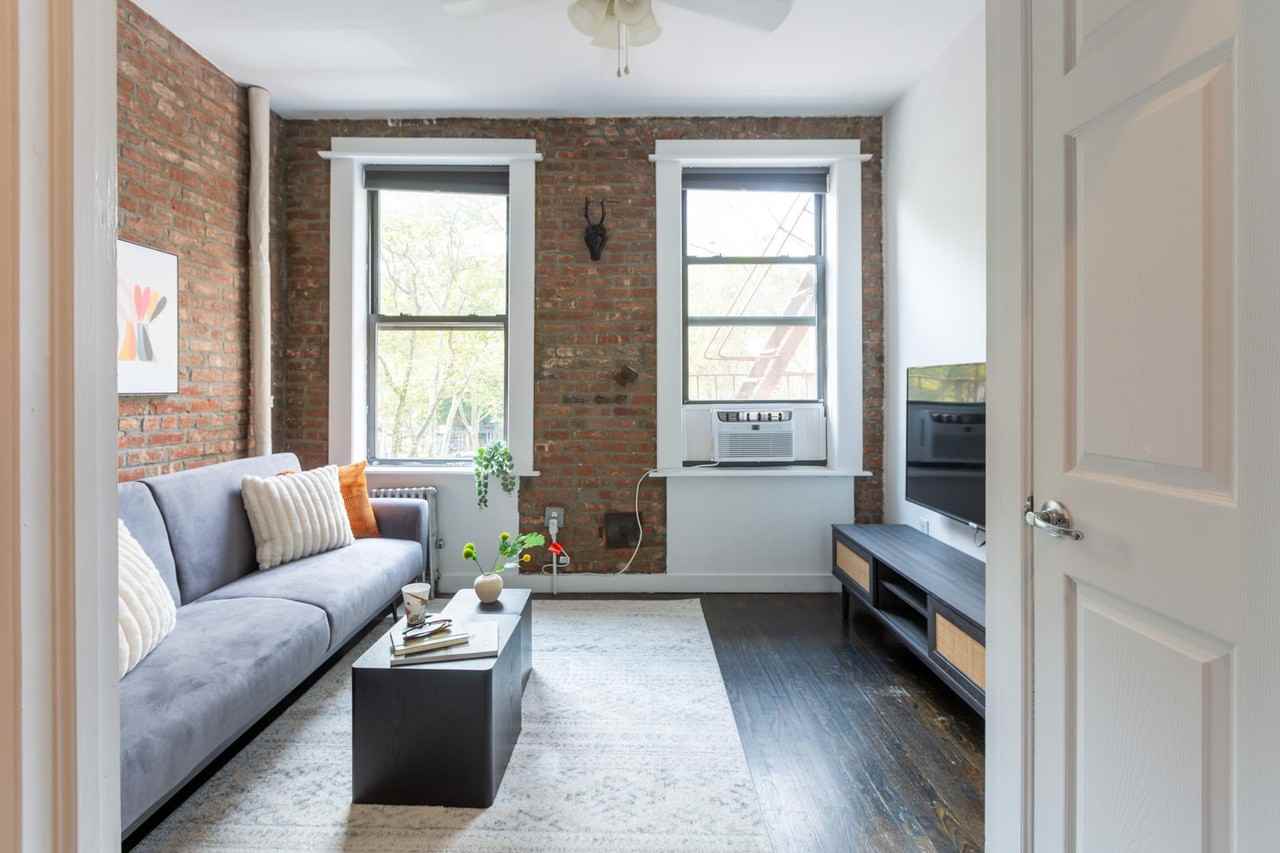 An ideal option for both business and leisure travelers, this 1-bedroom apartment is situated in the bustling heart of the Lower East Side, offering convenient access to all the city's attractions. Whether your purpose is business or pleasure, this apartment is fully equipped to ensure a comfortable and pleasant stay. Located on the second floor of a walk-up building, it requires only one flight up. This apartment features 1 bedroom, 2 baths, and a folding couch for extra guests if needed. It includes an in-unit washer/dryer and a fully equipped kitchen. The bedroom faces the backyard, ensuring no street noise, and there is a dining area for two and two closets. Enjoy free high-speed wireless internet, perfect for working remotely or staying connected throughout your stay. The apartment offers a peaceful and comfortable retreat, thoughtfully designed with added touches to enhance your experience. Relax with a 50" flat-screen TV, sink into luxurious linens, and wrap yourself in plush towels. The fully stocked kitchen makes meal preparation effortless. A hairdryer and iron/ironing board are also provided for your convenience. Pets are welcome with a fee of $415 per stay. Located in the Lower East Side, the apartment offers stunning views of Sara D. Roosevelt Park. The neighborhood is a perfect fusion of classic and modern, with eclectic innovative restaurants, undiscovered art galleries from Orchard Street to the Bowery, and hidden boutiques dotting the area. It is steps away from Nolita and SoHo House's Lower East Side flagship, Ludlow House, marking the neighborhood's emergence as the newest epicenter of creative literati. The B and D trains are conveniently located on the next corner, making it easy to get around. This is a walk-up building unit on the second floor with only one flight up.