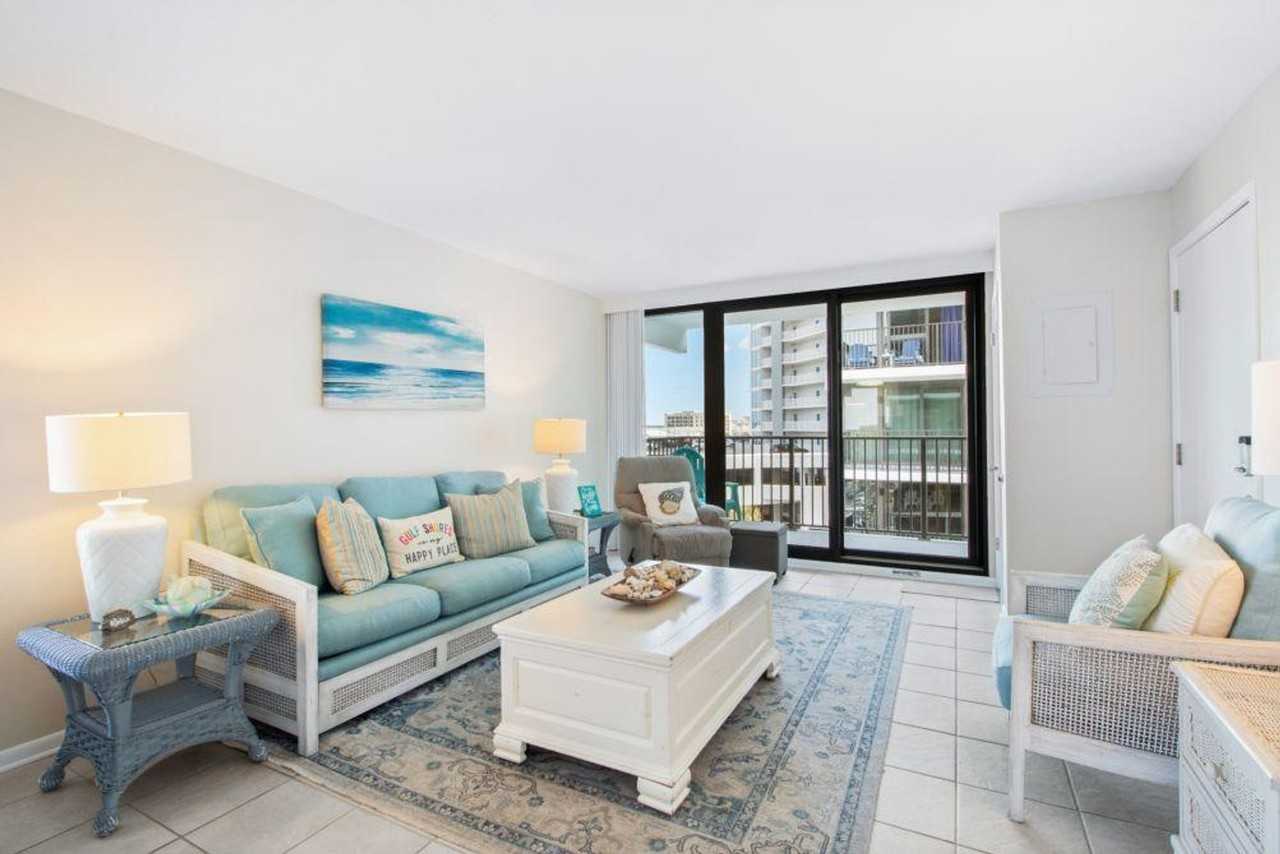 Feel at home in this beautiful 1-bedroom condo located in Island Sunrise 469, Gulf Shores, AL. Enjoy stunning partial ocean and beach views from your private balcony, along with a view of the pool area. This condo offers a perfect getaway for your family vacation, featuring a queen bed in the master bedroom with balcony access, a sleeper sofa, and a queen murphy bed in the living room. Designed to be your home away from home, this spacious condo includes a well-stocked kitchen with a dining area, perfect for cooking a homemade seafood feast. The charming layout is complemented by comfortable furniture and nautical details, and you can enjoy a great BBQ area for grilling delicious dinners. The parking fee is included in the total amount, and there is a parking limit of 1 car. Gulf Shores is a fantastic destination for a fun-filled vacation, offering shopping, dining, and entertainment. This condo is just minutes away from great restaurants and attractions like arcades, water parks, and amusement parks. History enthusiasts will appreciate the proximity to historic sites such as Ft Morgan, Ft Gaines on Dauphin Island, and the USS Alabama and Ft Conde in Mobile. For your safety and protection, some properties have cameras installed outside, but surveillance cameras are not inside any of our properties. The minimum age requirement for check-in from March 1st to May 1st is 25 years old. For same-day late check-ins, approval from the host is required before booking. The home has a maximum occupancy limit, and renters who exceed it are subject to eviction. No smoking is allowed in the unit or on the balcony, with a $250 fine plus cleaning costs for violations. Quiet hours are from 10 pm to 8 am, with a $200 fine for violations. The condominium association has a strict no-pets policy, except for ADA-compliant service dogs. No parties or events are allowed, with a $500 fine for violations. A State Identification Card or Driver License copy will be requested upon booking. Miles of beautiful sandy beaches and Gulf State Park with beaches and a fishing pier are nearby. A number of restaurants and bars are just moments away, where you can watch the sunset as you dine on fresh-caught seafood. For even more entertainment, head to the Wharf, offering zip lining, mini-golf, arcade games, live music, and a giant Ferris wheel.