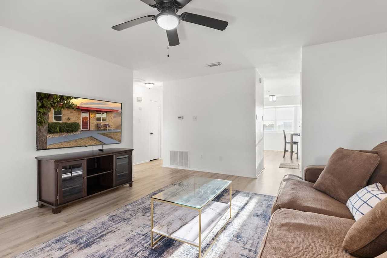 The advertised rate of $2,814/month is the lowest available price, based on a 1 month(s) stay with a move-in date of April 2, 2026. Rates vary depending on the duration of stay, season, and other parameters. For exact pricing and additional pricing components, please visit our website and enter your desired move-in and move-out dates. The rate is applicable when billed upfront; it can be higher if billed in multiple payments. Welcome to this cozy, apartment-style townhome in Killeen, ideal for Fort Cavazos visits or family time. Feel at home in this welcoming retreat nestled in a peaceful neighborhood just off the highway. Inside, unwind in comfort and style, with a fully equipped kitchen, plush furnishings, and a cozy, fenced backyard. The kitchen has everything you need to cook, including a stove, oven, microwave, refrigerator, coffee maker, hot water kettle, toaster, wine glasses, cooking basics like oil, salt, and pepper, pots and pans, dishes and silverware. For your convenience, there is a full bathroom with a shower and tub, as well as a washer. Enjoy entertainment with smart TVs in the main living area and spare room, and stay connected with high-speed Wi-Fi. Early check-in and late check-out are available for a fee, based on availability. Pet stays are welcome with a fee of $10 per night per pet. A mid-stay clean is offered for stays longer than 30 days or upon request, and an additional fee may apply. Just 3 minutes away, you'll find Walmart, gas stations, dining, and entertainment, putting everything you need at your fingertips. Exterior-only security cameras are located on the front and back porch. Quiet hours are between 10 PM and 7 AM. Parties are not allowed without approval, and undisclosed parties or events will incur a $1,000 per day penalty. Undisclosed pets will incur an additional $50 per day penalty per pet. Guests must sign and return a rental agreement 48 hours prior to check-in, or before arrival for last-minute bookings. You agree to keep the thermostat set between 68-78 degrees during your stay. No smoking is allowed, and a penalty of $500 plus the cost of cleaning and remediation will be incurred. Includes a desk in the office/spare room, perfect for working or relaxing.