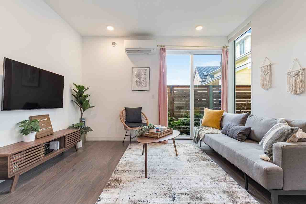 Feel at home in this modern townhome on a quiet street, located next to Seattle University. This 1073 sqft home has 2-bedrooms and 2-bathrooms and is a 4-story townhome (including the rooftop) with a staircase walkway to the entrance. This home features a great floor plan with a bed and bath on different levels, perfect for group travel. Mini-split air conditioning keeps the home cool in the summer heat. The kitchen is stocked with high-end kitchen appliances, cookware, silverware, servingware, spices, Keurig coffee and tea. High-quality beds, mattresses, pillows and linens ensure comfortable sleeping. A smart TV and high-speed internet are available for streaming or remote work needs. An on-site washer and dryer are available for your laundry needs. Enjoy the rooftop patio with comfortable outdoor furniture for an al fresco experience. Parking is available for two cars: dedicated parking and one extra parking permit for free street parking. Well-trained pets are welcome at $50 per pet per night. With a walk score of 96, this city center townhome is within walking distance of tons of restaurants, coffee shops, a city park, and a bus stop (line2,12). Amazon, UW, Seattle Japanese Garden, Pike Place Market, Swedish Hospital, Harborview Medical Center, and Virginia Mason Medical Center are all within a 10-minute drive. As one of Seattle’s oldest and most densely populated neighborhoods, First Hill/Cherry Hill provides a unique experience from block to block, with lush tree-lined lanes north of Madison Street, the twin spires of St. James Cathedral, and plenty of quirky local finds in between. The district’s location, nestled between downtown and the colorful Capitol Hill neighborhood, means that calling First Hill home also conveniently positions you to make the most of the entire city. Many dining, shopping, and entertainment options are within walking distance, and many bus stops are less than a 5-minute walk away. Ride-share services are highly recommended. This townhome is not handicap friendly, and guests must be comfortable with stairs as there are multiple stories. Quiet hours are between 10 pm and 8 am, and there is a $500 fine per violation for parties and events, smoking or vaping of any kind anywhere on the property including outdoor areas, digital piracy, and wearing shoes in the home. Please refrain from allowing pets on furniture and linens, including couches, throws, beds, pillows, and towels. Please do not leave pets unattended and bring poop bags to pick up after your pets. Registration Number: STR-OPLI-22-001966