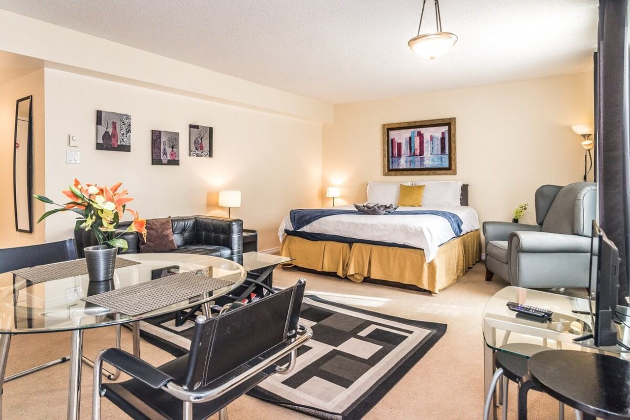 The advertised rate of C$2,294/month is the lowest available price, based on a 1 month(s) stay with a move-in date of April 2, 2026. Rates vary depending on the duration of stay, season, and other parameters. For exact pricing and additional pricing components, please visit our website and enter your desired move-in and move-out dates. The rate is applicable when billed upfront; it can be higher if billed in multiple payments. Snag this wonderful studio for yourself right in the sought-after Quartier des Spectacles neighborhood and you'll experience the very best of Montreal! Your suite has its own kitchen, high-speed internet, and an entertainment system. Parking upon availability for an additional fee. Fall in love with how easy it is to live in the city, being just minutes away from some of the best restaurants and bars, as well as three metro lines, a bus terminal, and bike rental services. Walk to Downtown, Old Montreal, and Chinatown. 31 nights minimum stay.