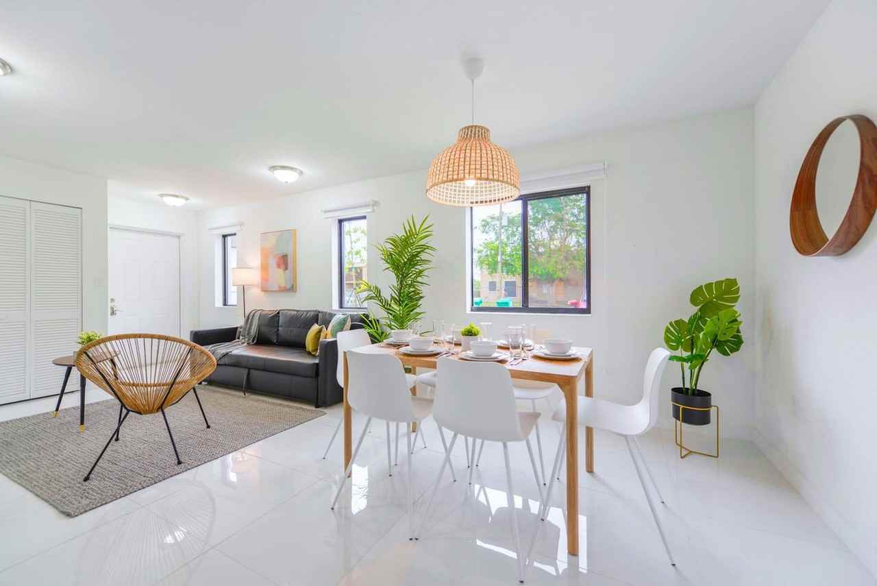 Feel at home in this spacious two-story duplex ideally located near the lively MiMo District. Designed for both business and leisure travelers, this home offers comfort, space, and unbeatable access to the city’s top spots. This home features thoughtfully curated décor creating a welcoming vibe, a living room with a sofa bed for extra guests, and a fully equipped kitchen to prepare your favorite meals. For added convenience, there is an in-unit washer and dryer and two full bathrooms and a half bathroom on the first floor. Free parking is included. This centrally located home offers a blend of local culture, convenience, and proximity to Miami's most famous attractions. Immerse yourself in the authentic Miami vibe with local eateries, family-run shops, and hidden gems. Wynwood Arts District is just 10 minutes away, the Design District is 15 minutes away, and South Beach is a 20-minute drive. Nearby supermarkets and convenience stores ensure you have everything you need for your stay. Major highways like I-95 and SR-112 are easily accessible, and nearby parks like Arcola Lakes Park or Hadley Park offer opportunities for relaxation and recreation. There is no heating system, but the space is designed to keep you comfortable year-round. Quiet hours are between 10 PM and 8 AM, and violations may result in fines from the building. Smoking is not allowed inside, as it may lead to a fine. Package deliveries to the property address are not allowed. Washcloths are not included. In case of any lost linens or apartment keys, an additional cost will be charged to replace them. Please turn off the air conditioning when leaving. Check-in time is at 4 PM and check-out time is at 11 AM. If you require a late check-out, please contact us 24 hours in advance; please note that this will incur an additional cost. To ensure a secure experience, we kindly ask you to register the main guest staying with us by providing a photo ID on the day of check-in.