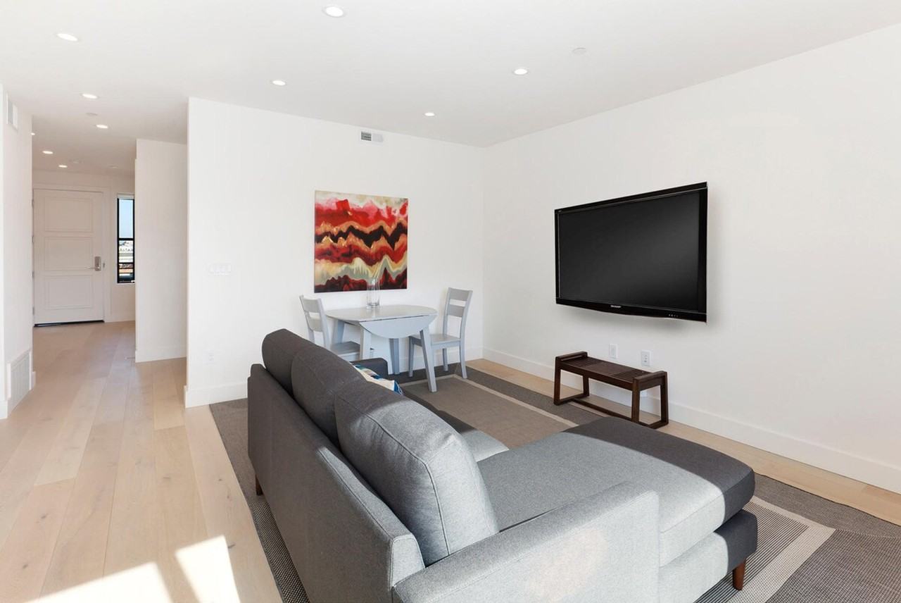 Feel at home in this 1-bedroom, 1-bathroom condo located in a modern elevator building built in 2018 in San Francisco’s desirable Mission neighborhood. This condo features an open floor plan living room and dining room combination with hardwood floors. The kitchen is open to the living area and has high-end stainless steel appliances including a four-burner gas range, dishwasher, and new refrigerator. The kitchen has counters, a tile backsplash, a deep sink and high-end cabinets. A GE washer/dryer is in the unit, and central air conditioning and heating are included. Building amenities include a beautiful rooftop terrace which spans the length of the whole building, giving residents breathtaking city views as well as access to a communal barbecue area, outdoor fire pit and patio furniture. Water, sewer, trash, and WebPass Wi-Fi are included. PG&E is paid to $145, after which the tenant pays. Located near Valencia Street and 18th Street, this is one of the Mission’s hottest locations. Enjoy all that San Francisco has to offer and the vibrant Mission at your doorstep. BART, Muni, tech shuttles, and freeways are all very accessible. Close to shops, parks, restaurants, and coffee shops, the location has a Walk Score of 97, a Transit Score of 100, and a Bike Score of 98. Pets, including dogs, are permitted with permission. Certain types of pets are not allowed, including monkeys, ferrets, snakes, rabbits, livestock, reptiles and certain dogs. The restricted dog breeds include some Terriers including Pit Bull (a.k.a. American Staffordshire Terrier or Staffordshire Bull Terrier), American Bull Dog, Tosa Inus, German Shepherd, Rottweiler, Presa Canarios, Fila Brasileiros, Argentine Dogos, Akitas, Doberman Pinscher, Alaskan Malamute, Bull Mastiff, Wolf Hybrids and all mixes of these breeds, or any dog over fifty (50) pounds. No more than two (2) pets are allowed. The pet must be taken to the outside of the premises for their toilet purposes and you must clean up after your pet. Pets are not allowed in common areas except to enter or exit the building. Pets must be on a leash at all times when outside the unit. Residents living in upstairs apartments with a balcony must not leave the pet on the balcony for extended lengths of time. Patios should be kept clean of any pet waste. If the barking of a Tenant’s dog becomes a constant issue for the quiet enjoyment of the premises by other residents through documentation by several residents, then Tenant and Owner will discuss positive ways to mitigate this disturbance. If the Tenant is unwilling to mitigate this disturbance, then Tenant will be asked to relocate or face possible eviction. A fine will be charged for any owner that is not picking up after their dog at the pet rest area at the roof. Includes a desk for remote work. Please note that a refundable security deposit of $1,000 is required and must be paid directly to the partner after the booking is confirmed.