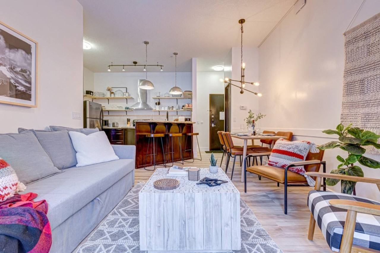 The advertised rate of C$4,891/month is the lowest available price, based on a 1 month(s) stay with a move-in date of April 11, 2026. Rates vary depending on the duration of stay, season, and other parameters. For exact pricing and additional pricing components, please visit our website and enter your desired move-in and move-out dates. The rate is applicable when billed upfront; it can be higher if billed in multiple payments. Start your Rocky Mountain getaway and feel at home in this beautiful condo, just a short walk to Downtown Canmore. This wheelchair-accessible main-floor unit offers a perfect base for your adventure. This newly renovated condo features a fully equipped kitchen, in-suite laundry, air conditioning, a gas fireplace, fast Wi-Fi, and cable. Enjoy the 50" Roku Smart TV in the living room and a 32" Roku TV in the bedroom. The Grande Rockies Resort features an amazing indoor waterpark, equipped with an inviting heated pool, a thrilling three-story waterslide, and a lively kids' splash pool. There is also an indoor/outdoor hot tub to unwind in and a delicious on-site restaurant. Enjoy heated underground parking. A complimentary Parks Canada Pass is provided for exploring Banff, Lake Louise and beyond. Nestled in the heart of the Canadian Rockies, Canmore offers a perfect blend of adventure and relaxation, from scenic hikes and biking trails to boutique shopping and local dining. Explore the Canmore Nordic Centre, take a stroll downtown, or venture into Banff National Park just 20 minutes away. The apartment is just a 5–10 minute walk from downtown Canmore, with trails, parks, cafés, and restaurants all within easy reach. Please observe quiet hours from 10 PM to 8 AM, as there are neighbors to respect. A $500 fee will be charged if there is evidence of any unauthorized events or parties on the property at any time. Pets are not permitted in the apartment. A minimum $250 fee will be charged if there is evidence of any unauthorized pets in the property and may increase to cover additional cleaning or damages. Strictly no smoking, vaping, or illegal substances are allowed inside the property. Violations incur a minimum $400 fee, with additional cleaning charges if damage or lingering odors are found. The main entrance to the building is locked from 11 PM to 7 AM, and you will receive an access code for after-hours access.