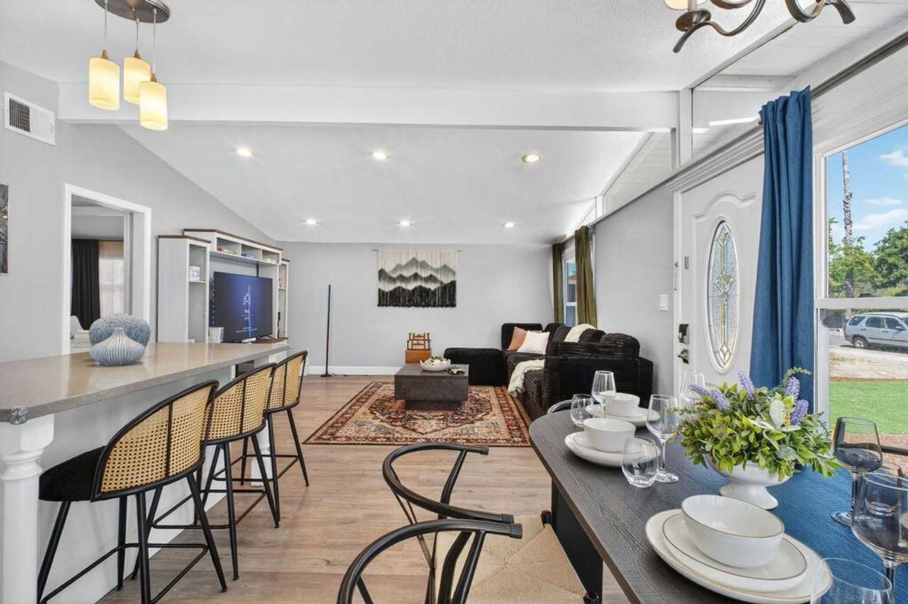 Experience the best of Sunnyvale and Santa Clara in this exquisite 4-bedroom, 3-bathroom home. Perfectly situated minutes from Silicon Valley’s top companies, Santa Clara Convention Center, Levi’s Stadium, and Highway 101, this residence offers unparalleled convenience for commuting and exploring. Feel at home with its dedicated office and work room, ultra-fast WiFi, fully stocked kitchen, in-unit washer/dryer, private garden, and outdoor patio. This modern coastal retreat is thoughtfully curated to blend comfort, style, and function, making it ideal for families or professionals seeking leisure and productivity. The home features spacious bedrooms, including a serene master suite with plush linens and ample storage. Enjoy open gathering spaces with a seamless flow between dining, living, and patio areas, perfect for relaxation and entertainment. The property includes an indoor attached garage, ideal for secure parking. Additional amenities for longer stays include extra linens, towels, and cleaning supplies, ensuring a comfortable and convenient experience. Nestled in a prestigious location, this home is just minutes from Silicon Valley’s top companies, Santa Clara Convention Center, Levi’s Stadium, and Highway 101, providing easy access to all major sites. Everyday needs are met with Costco, Target, and Walmart within a 10-minute drive, along with upscale restaurants, cafés, and local attractions like California’s Great America. The home is a non-smoking environment and does not allow parties, ensuring a peaceful and respectful atmosphere for all guests. Check-in and check-out times are flexible to accommodate your schedule. Designed for remote work, the home offers a dedicated office and additional work room, each tailored for focus with fast WiFi. This set-up is ideal for business travelers and extended stays, providing a blend of sophistication and functionality.