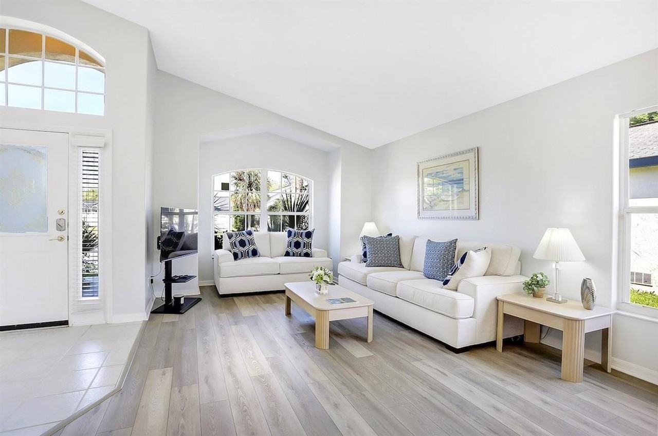 Welcome to this remodeled and refurbished villa, centrally located just off US Hwy 192 in Indian Ridge, one of the closest communities to the Disney Parks and attractions. This beautiful 3-bedroom, 2-bathroom villa is a gem, offering an immaculate and inviting space to experience Florida living at its finest. The south-facing pool is a private oasis, fully enclosed and screened, with a larger-than-average deck complete with sun loungers and chairs, perfect for relaxing or swimming with the family. Enjoy a meal outside in the spacious outdoor dining area. This 3-bedroom villa comfortably sleeps six and features a smart TV in each room. The master bedroom boasts a king-size bed with a new mattress and a large en-suite containing two sinks, a bathtub, and a large shower. The other two bedrooms each have two twin-size beds and share a well-appointed bathroom. All bedrooms offer ample storage space, with the master bedroom featuring a large walk-in closet. The villa includes two spacious living areas with all new flooring, each equipped with a large screen smart TV. The newly remodeled kitchen is very well equipped with all new appliances and a range of equipment and utensils. Pool heating is available for a fee of 40 dollars a day with a 2-day minimum. The villa has a garage that can accommodate two cars, with space for a further two on the driveway. Apart from all that Disney has to offer, attractions like outlet shopping, dining, supermarkets, and nightlife are very close to the villa, while Universal Studios and Sea World are a short drive away. Walmart and Target are both within a couple of miles, as is all the entertainment on offer at Margaritaville Resort and its new water park, Island H2O. Major roadways are easily accessible, ensuring a quick drive to all that Kissimmee and the greater Orlando area have to offer. Pets are prohibited, and for any exceptions, please talk to the host. Guests will have the entire house to themselves, with remote access provided via a special code. A 24-hour host is on-site if needed. The Indian Ridge community is very family-friendly and offers additional amenities, including a large community pool, tennis courts, and a children's play area, all within a one-minute walk of the property.
