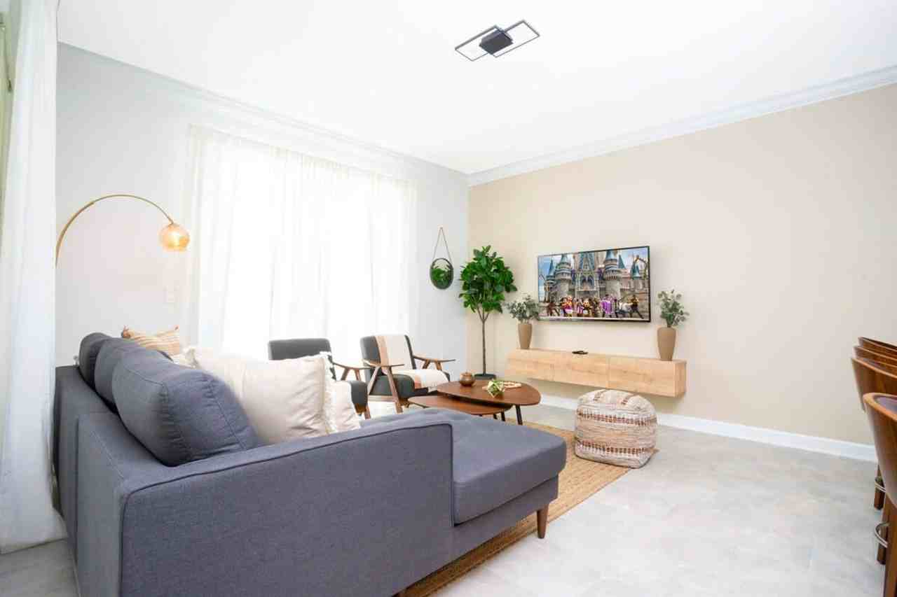 Discover the allure of this beautiful 4-bedroom, 3-bathroom townhome, adorned with stylish decor. Comfortably accommodating up to 10 guests, this space is designed for your family's ultimate relaxation. Enjoy the enchantment of the themed Mickey and Star Wars bedrooms, creating a touch of magic for all. Your private pool is ready for relaxation and fun. Located in the prestigious Champions Gate resort, your Orlando/Kissimmee haven includes a complete clubhouse with two pools, a lazy river, tennis courts, and a fitness center. Convenience is assured with nearby markets, restaurants, and stores. Delve into the allure of this thoughtfully designed 4-bedroom, 3-bathroom townhome – a true masterpiece of modern design with meticulous attention to every detail. Your family's contentment is a priority in this splendid abode. The spacious living room effortlessly blends with the dining area and fully equipped kitchen, forming a central hub of relaxation and culinary delight. Step outside to the outdoor oasis – your private, heatable pool on the patio invites you to unwind, offering moments of serene leisure. The first floor is adorned with a regal king bedroom and a conveniently located bathroom. Ascending upstairs, you'll discover the master king bed suite, along with two additional bedrooms sharing a bathroom. Enhancing the excitement, these themed bedrooms promise unforgettable experiences. The Star Wars-themed room features a double and a single bed, while the Mickey-themed bedroom is adorned with double and single beds as well. For your convenience, a laundry room equipped with washer and dryer stands ready. Enjoy the connectivity of complimentary Wi-Fi and relish the ease of free parking. To ensure a seamless start to your stay, a welcome kit featuring essential bathroom and kitchen amenities is thoughtfully provided. Heating the pool is a paid service and there is also a fee charged to use the barbecue grill. Champions Gate Resort is a resort-style community that offers every imaginable amenity for a blissful stay. It features an impressive clubhouse with a variety of courts and outdoor activities like tennis, beach volleyball, and a golf course, while its restaurant and fitness center will help you stay refreshed and fit. Its swimming pool complex is perfect for a splashy day, with slides, a lazy river, and a kids splash pool. Plus, the resort is just 20 minutes away from Disney Parks, ensuring plenty of opportunities for fun and adventure. Shopping, dining, and entertainment are also within reach, with stores, restaurants, and supermarkets nearby. It's the perfect place for a family getaway; come and experience all the perks of Champions Gate Resort! Quiet hours are between 22:00 and 8:00. Replenishment of bathroom and kitchen amenities is the guest's responsibility.