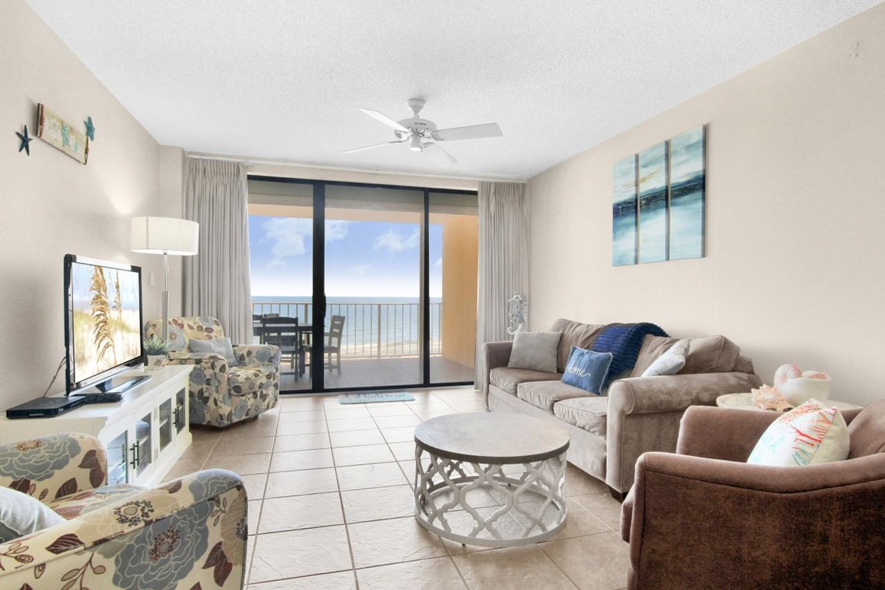 Experience breathtaking ocean views from this beautifully updated 3-bedroom, 2-bath apartment located directly on the beach, just a short walk from the sugar sands of Orange Beach. Enjoy the convenience of nearby stores and shopping, only a minute's drive away. This apartment features a large patio perfect for entertaining and a spacious split-bedroom layout with open kitchen and living spaces. The apartment boasts stunning views from the patio and offers large bedrooms with plenty of space to relax after a day at the beach. It includes an open kitchen and living area, perfect for gatherings. Guest Registration Certificates are required for parking, costing $51.50 per vehicle with a maximum of two vehicles per stay. A third vehicle may be parked in the gravel lot free of charge with a gravel pass obtained from the guard shack or office during business hours. Situated directly on the beach, this apartment provides easy access to the sugar sands of Orange Beach. Nearby stores and shopping are just a minute's drive away, making it a convenient location for all your needs. Check-in is after 4:00 PM and checkout is by 10:00 AM, with self-check-in available via Combo-Lock. Smoking is prohibited anywhere on the property or complex premises unless in designated areas. Pets are not allowed, and this is a pet-free complex. Guests are expected to be respectful of neighbors and follow all posted rules and guidelines for amenities. Failure to comply may result in losing the right to occupy the rental. A penalty of $25 applies for failure to return the parking pass, and a $50 fee applies for failure to vacate the property within 30 minutes of checkout time.
