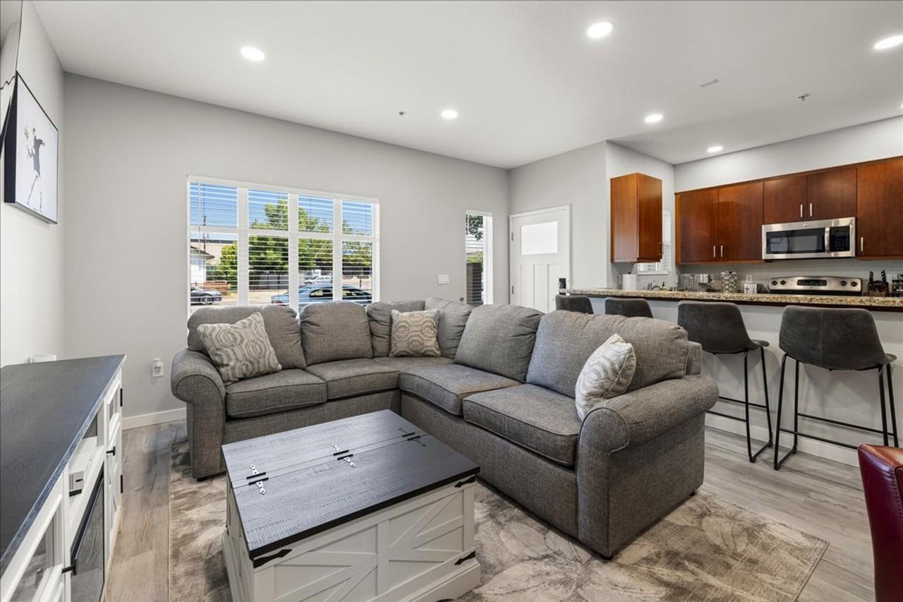 The advertised rate of $9,571/month is the lowest available price, based on a 30 day(s) stay with a move-in date of August 5, 2026. Rates vary depending on the duration of stay, season, and other parameters. For exact pricing and additional pricing components, please visit our website and enter your desired move-in and move-out dates. The rate is applicable when billed upfront; it can be higher if billed in multiple payments. Feel at home in this modern, clean townhouse in Boise! This 1100 square foot home is in a fantastic location. The kitchen comes fully loaded with stainless steel appliances such as a microwave, fridge, stove and dishwasher, along with glasses, mugs, dishes and cutlery. This home also features a smart TV in the living room, fast Wi-Fi, an in-house washer and dryer, and professionally decorated space with unique furnishings and a warm ambiance. Free gated parking is available, plus free extra street parking. This home is within walking distance to all of downtown and the Boise Zoo, and a 10-minute walk to BSU. It's also close to the downtown restaurant scene and has easy access to our amazing local water park and Bronco Stadium and BSU campus. It's just off the I-184 exit, so there is very easy access to the rest of the valley. All of the bedrooms are upstairs, so it isn't very wheelchair/disabled friendly unless you want to sleep on the couch. The home occupancy permits 7 people. Professionally cleaned and sanitized between each and every guest. Easy self-check-in via secure door keypad.