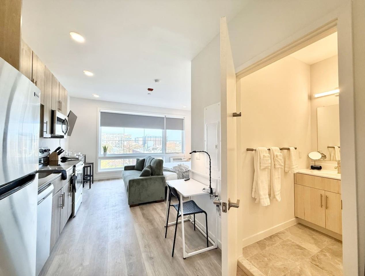 Welcome to this stylish studio in the heart of Old City, Philadelphia’s historic core. Feel at home in this modern and fully furnished studio that blends comfort and urban style. This apartment is a perfect fit for business travelers, healthcare professionals, solo adventurers, or couples exploring Philly’s most iconic neighborhoods. This apartment features a king-size bed with a memory foam mattress, a 4K HDTV with Roku, and a fully equipped kitchen with a Keurig, complimentary coffee, and tea. The kitchen also includes a refrigerator, freezer, stove, oven, and microwave. Enjoy central air conditioning and heating, fresh linens, a full closet, a hair dryer, and an iron with an ironing board. A pack-n-play and high chair are available in the unit. You'll also have access to a shared gym. Free parking is available for 1 vehicle. Pets are allowed with a minimal fee. This apartment is in a lively, historic part of Philadelphia—Old City / Spring Garden. You'll be minutes from major landmarks like Independence Hall, Liberty Bell, and the Convention Center, with easy access to Fishtown, Northern Liberties, and public transportation (SEPTA is just a short walk away!). This neighborhood is steeped in rich history and colonial architecture and is walkable to art galleries, boutique shops, craft breweries, and top-rated restaurants in Northern Liberties and Fishtown. The location offers unmatched access to the city’s top attractions, transit, and conveniences. SEPTA train and bus access are just steps away. Liberty Bell and Independence Hall are a 15 to 20-minute walk, Elfreth’s Alley is a 20 to 25-minute walk, and Reading Terminal Market is a 15-minute walk. This apartment is in a lively, historic part of Philadelphia, so you may hear the usual sounds of city life, including traffic, nearby restaurants, and nightlife, especially on weekends. Smoking or open flames are strictly prohibited, and any violation will incur a $1,000 fee, a $500 ozone treatment, and cleaning costs. Quiet hours are from 10:00 PM to 8:00 AM. There is a $50 per person, per night fee for undisclosed guests. Late check-out will incur a fee of $75 per 30 minutes after 10:00 AM. Guests are responsible for trash, and fines for violations are the guest’s responsibility. A cleaning is required every 30 days and will be auto-charged to your original payment method. Includes a dedicated workspace that is ideal for business travelers and fast dedicated Wi-Fi. This is an urban property—some city sounds (traffic, trains, construction, etc.) may be heard during your stay.