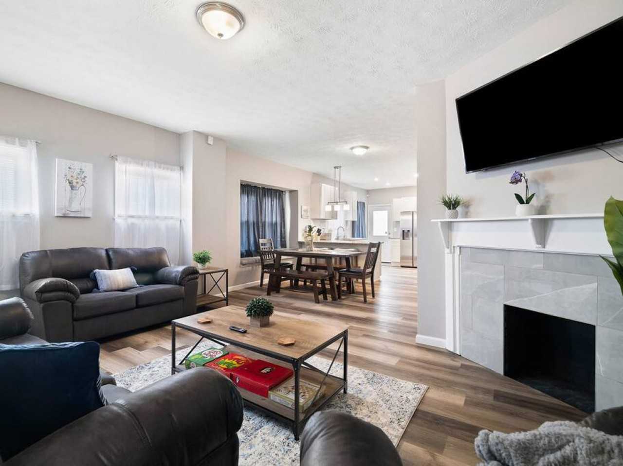 Immerse yourself in comfort and style at this newly renovated four-bedroom home, nestled in the heart of Gordon Square. With modern amenities and a prime location, you'll enjoy a memorable stay just a short 7-minute drive from downtown Cleveland. The convenience continues with Edgewater Beach only 4 minutes away and the airport a quick 14-minute trip. This spacious and well-appointed home is the ideal choice for both business travelers and families. Step inside and discover a spacious home designed for your comfort and enjoyment. On the main level, you'll find a cozy bedroom featuring a comfortable twin bed, a full bathroom for your convenience, and a modern kitchen equipped with all the essentials. Upstairs, three beautifully furnished bedrooms await, each boasting a plush queen bed with a high-quality mattress. One of the bedrooms even features an attached remodeled bathroom, adding a touch of luxury to your stay. In the living area, an exciting full-sized arcade game (NBA Jam) awaits, providing hours of entertainment for all ages. Alternatively, relax and unwind while watching your favorite movie on the flat-screen TV. Rest assured with the included security system, providing peace of mind throughout your stay. We warmly welcome your furry family members as well, with a pet-friendly policy allowing a maximum of two pets. An additional cost applies and no cats are allowed. Undisclosed pets may lead to reservation cancellation without refund and you may also be held responsible for any damage caused. This is to protect guests with allergies and ensure our cleaners can keep the home in top condition for all visitors. As a valued guest, you'll have exclusive access to the entire house, including the fully equipped kitchen, spacious living area, and all four comfortable bedrooms. Unwind on the plush furnishings, enjoy a friendly competition on the full-sized arcade game, and stay connected with high-speed Wi-Fi. For your convenience and security, a driveway accommodating approximately four vehicles is available, and additional free on-street parking can be found right in front of the house. Smoking is not permitted inside the house, but smoking areas are available outside. There is a strict no-party and no-event policy to ensure a peaceful environment for all guests. Please be courteous to neighbors and keep the noise to a minimum when outside. Decibel readers track noise levels outside, and quiet hours are between 10pm and 8am. Weapons of any kind are strictly prohibited on the property. If you violate any house rules, you will be required to vacate the property immediately, and no refund will be issued for any unused nights. Guests are responsible for refilling the propane tank if needed for the grill, but reimbursement is available with a receipt. A friendly reminder to please remove your shoes when entering the house to help keep the space clean and comfortable for everyone.