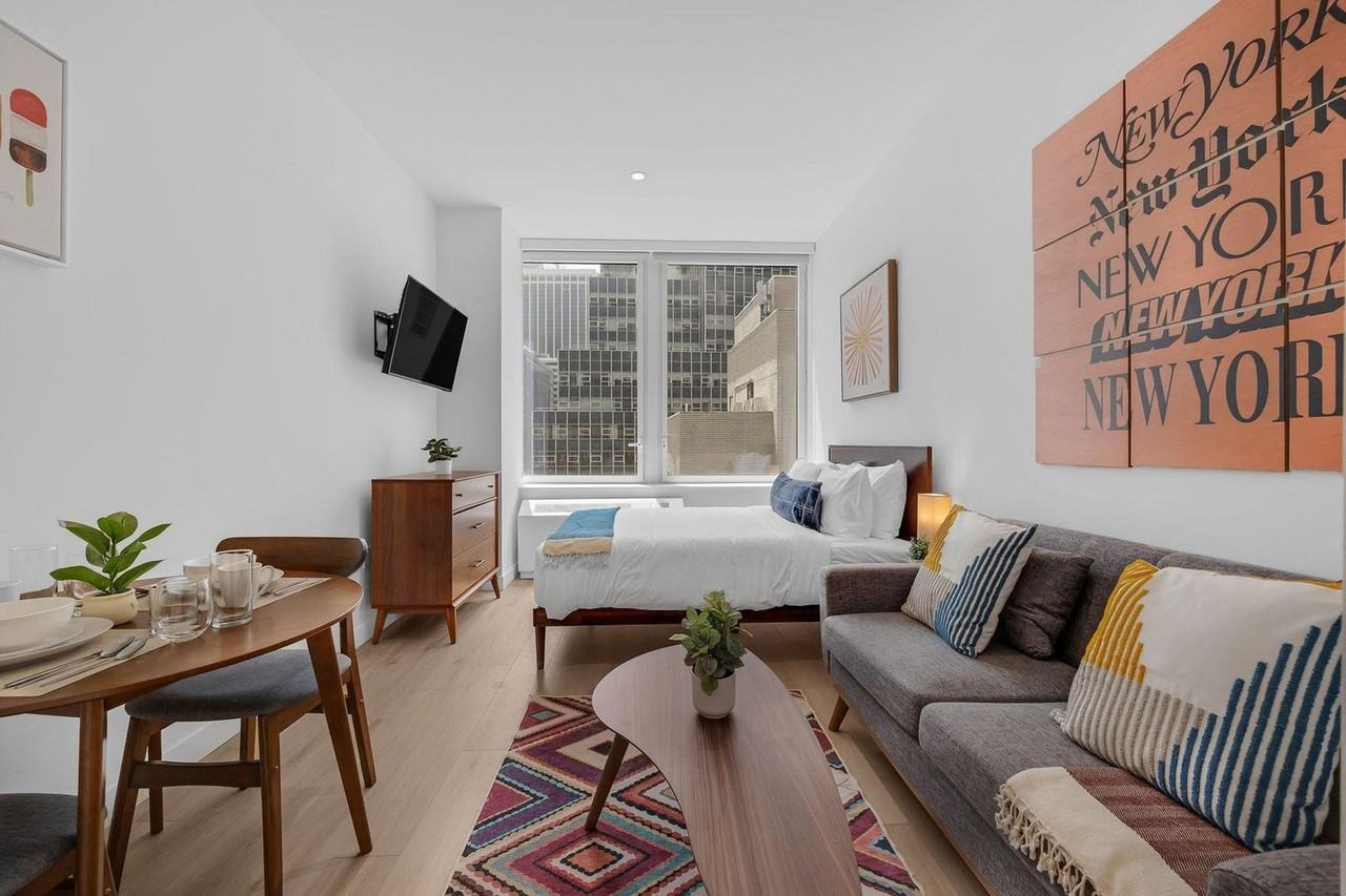 The advertised rate of $6,228/month is the lowest available price, based on a 1 month(s) stay with a move-in date of April 1, 2026. Rates vary depending on the duration of stay, season, and other parameters. For exact pricing and additional pricing components, please visit our website and enter your desired move-in and move-out dates. The rate is applicable when billed upfront; it can be higher if billed in multiple payments. Feel at home in this fully furnished studio at Pearl House NYC, your urban sanctuary in the heart of Manhattan’s Financial District. Custom designed for remote professionals and long-term travelers, this apartment offers a stylish and efficient living space, complete with a fully equipped kitchen with stainless steel appliances, ample storage, fresh linens, a full bathroom, a smart TV, and an in-unit washer and dryer. Exclusive amenities at Pearl House NYC include a social house, clubhouse, and sky house. The social house features separate service and food delivery elevators, a tech-smart 24/7 package room, secured bicycle and resident storage, a fireside lounge, and a co-working lounge and pearl café. The clubhouse is designed for leisure, entertainment, and socializing with social lounges, a 3,500-square-foot gym, a spa with a plunge pool, whirlpool, therapy chamber, steam room, sauna, and treatment room, a sports box, a full swing suite, bowling alley and lounge, a game den, a creator’s room, a kid’s corner, and a paw salon. The sky house features a sky bar, sky terrace, sky box, city lounge and harbor lounge, and pearl works. Parking is available at nearby public garages, and guests must arrange independently. Early check-in from 9am-3pm is available for $75, and early check-in before 9am and late check-out after 3pm are available for the price of one full night’s rent. Late check-in after 8pm is available for $50, and late check-out from 11am-3pm is available for $75. Whether you’re commuting to Wall Street, exploring the South Street Seaport, or relaxing in the luxurious three-floor Sky House, this is the urban sanctuary you’ve been looking for. Internet speeds are not guaranteed and may vary depending on the device and location within the apartment. A laptop computer is not included in the home office set-up. Includes private high-speed internet, a standing desk, a work chair, a 34-inch ultra-wide monitor, a microphone and webcam, computer speakers, an LED streaming light and green screen, a keyboard and mouse, a laptop stand, and a docking station.