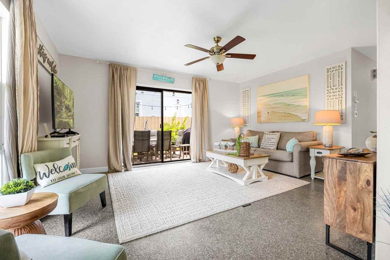 Escape to this charming 3-bedroom, 2-bathroom retreat in Cocoa Beach, just a block from the sandy shores. Feel at home in this coastal getaway. This stunning apartment features updated interiors with beach-inspired decor. The fully equipped kitchen is perfect for home-cooked meals, featuring modern appliances and plenty of space. Enjoy a game of pool in the game room, or challenge someone to a game of corn hole in the backyard. Take a dip in the private pool or hot tub, rinse off in the outdoor shower, fire up the barbecue grill, and gather around the fire pit for evening relaxation. To ensure a comfortable start to your stay, an initial stock of paper towels, toilet paper, tissues, coffee pods, creamer, sugar, light cleaning supplies, garbage bags, sponges, dish soap, and dishwasher tabs are provided. Plan to replenish these items as needed during your stay. This prime location offers an unforgettable experience, within walking distance of a variety of shops, restaurants, and entertainment options. Embark on a leisurely stroll along the bustling promenade of the Cocoa Beach Pier, where you'll discover eclectic boutiques, vibrant bars, and tempting restaurants offering a diverse range of cuisines. Nature enthusiasts will relish the opportunity to witness a rocket launch from the pristine shores of Cocoa Beach or embark on a sunset walk along the pier. You are very close to the A1A and SR520 intersection that will each get you anywhere you want to be quickly. Orlando is less than 50 minutes away and it's less than a mile to the Cocoa Beach Pier. Uber and Lyft are prevalent and efficient in the area. Mailbox access is not available for guests. Pets are not allowed. Smoking is not allowed at this property.