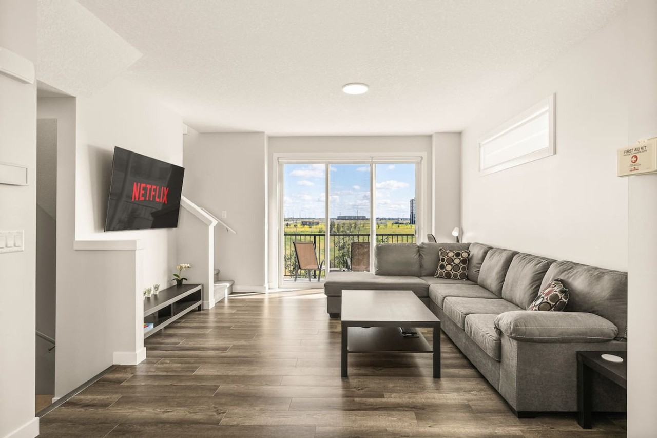The advertised rate of C$2,823/month is the lowest available price, based on a 30 day(s) stay with a move-in date of March 27, 2026. Rates vary depending on the duration of stay, season, and other parameters. For exact pricing and additional pricing components, please visit our website and enter your desired move-in and move-out dates. The rate is applicable when billed upfront; it can be higher if billed in multiple payments. Feel at home in this modern and cozy retreat in Skyview. This apartment comes with secure garage parking and is just minutes from the airport. This apartment features a fully equipped and stocked kitchen with stainless steel and custom appliances, including a 4-burner stove, oven, microwave, refrigerator, freezer, and dishwasher with pods provided. A coffee maker, toaster, blender, and essentials are also available. For your convenience, there is a washer and dryer in the unit with detergent provided, as well as a coffee machine and cooking supplies. This apartment also includes portable AC units and a heating system. Enjoy access to Banff National Park with a free national park pass. Optional upgrades include a welcome basket, birthday decor package, romantic wine & flower package, spa at home package, movie night upgrade, Christmas tree & decor, Halloween decor & pumpkin carving package, winter cozy package, beer tasting kit, diffuser & aroma set, additional bedding & sleeping arrangements, grocery pre-stocking service, and a pet-friendly package. Attached single garage parking is available, and additional parking can be found via street parking in front of the home. This apartment is located 2 minutes from Sky Pointe Landing (Tim Hortons, grocery, restaurants, and daily essentials), 5 minutes from Country Hills Blvd & Metis Trail for easy city access, 6 minutes from CrossIron Mills (Calgary’s top outlet shopping destination), 8 minutes from Calgary International Airport, 10 minutes from Genesis Centre (fitness, swimming, sports complex), 12 minutes from Prairie Winds Park (splash park, trails, and picnic areas), 14 minutes from Peter Lougheed Centre (hospital and medical services), 15 minutes from Sunridge Mall (retail and dining), 20 minutes from Downtown Calgary (business, entertainment, and nightlife), 22 minutes from TELUS Spark Science Centre & Calgary Zoo, 25 minutes from the University of Calgary, 26 minutes from Chinook Centre (Calgary’s largest shopping mall), 28 minutes from Foothills Medical Centre & Alberta Children’s Hospital, and 30 minutes from WinSport Canada Olympic Park (skiing, tubing, and adventure park). It also has quick access to major roads, just minutes from Stoney Trail & Metis Trail, making trips to Banff, Kananaskis, and beyond a breeze. A $250 CAD fine will be charged if smoking occurs with the migration of smoke or smell of smoke from the unit, following law and fine policy. No parties, drugs, excessive drinking, or loud music are allowed. Events for work or meetings are allowed upon request. Quiet hours are from 10 pm to 7 am; please be mindful of neighbors, bylaws, and basement tenants (applicable to certain units). There is a strict complaint policy: one complaint is a warning, and the second complaint is an eviction. Keep noise under 85db; there is a noise detector. A simple pre-arrival form, ID verification, and agreement may be required before check-in. Unauthorized late check-outs will incur a fee of $50 for the first hour, followed by $35 for each additional 30 minutes. ..