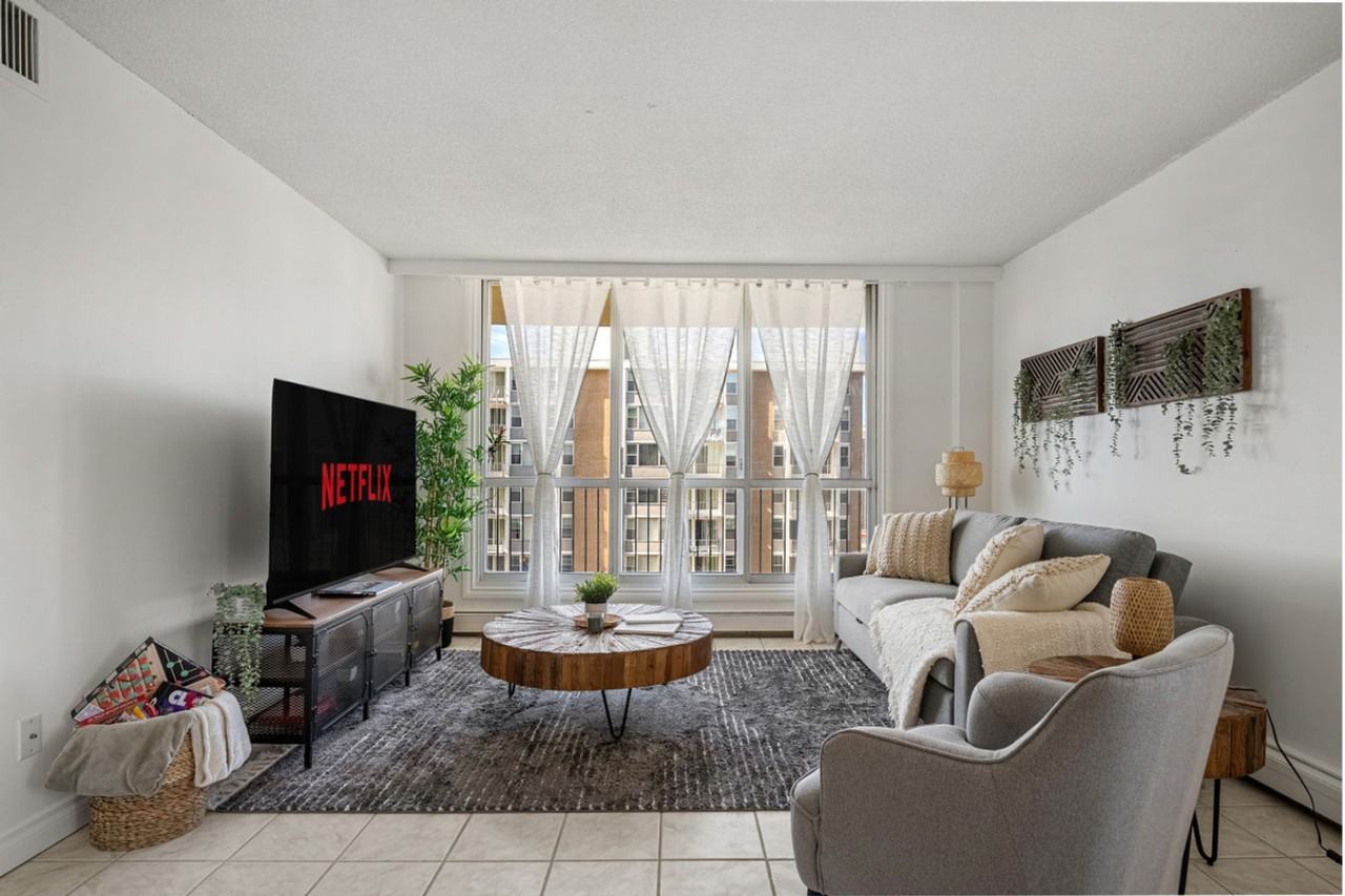 The advertised rate of C$4,362/month is the lowest available price, based on a 30 day(s) stay with a move-in date of August 16, 2026. Rates vary depending on the duration of stay, season, and other parameters. For exact pricing and additional pricing components, please visit our website and enter your desired move-in and move-out dates. The rate is applicable when billed upfront; it can be higher if billed in multiple payments. Feel at home in this cozy 2-bedroom suite, minutes from Ice District and Rogers Place. This suite offers all the amenities you need for a comfortable stay and a view of downtown. This suite features a fully equipped kitchen, a full-size bathroom with towels, a hair dryer, shampoo, conditioner, and bodywash, and a living room with a 65" smart TV with Netflix and access to the balcony. The kitchen and dining area includes a three 4-burner stove, oven, microwave, refrigerator, freezer, dishwasher with pods, Keurig coffee maker, toaster, blender, large dining table and chairs, paper towel, Keurig pods, tea, and Brita. Access to the gym, sauna, and billiards room is included. Free covered parking, visitor parking, and city street parking are available. This centrally located suite is 1 minute to Jasper Avenue (restaurants, cafes and nightlife), 3 minutes to Ice District and Rogers Place (concerts and Oilers games), 4 minutes to Edmonton River Valley (hiking and scenic trails), 5 minutes to Save-On-Foods and local grocery stores, 6 minutes to MacEwan University, 7 minutes to University of Alberta and Whyte Ave (shops and bars), 7 minutes to Royal Alexandra Hospital, 10 minutes to Kingsway Mall, 22 minutes to West Edmonton Mall (Galaxyland and Waterpark), and 29 minutes to Edmonton International Airport. Quick access to Jasper Ave, 109 St, and Yellowhead Hwy makes it easy to explore Banff, Jasper, or the Rockies. Smoking, vaping, or e-cigarettes are strictly prohibited anywhere on the property, and a $250 CAD fine will be charged if smoking occurs with the migration of smoke or smell of smoke from the unit. No parties, drugs, excessive drinking, or loud music are allowed. Quiet hours are from 10 pm to 7 am; please be mindful of neighbors and basement tenants. One complaint is a warning, and the second complaint is an eviction. Keep noise under 85db, as there is a noise detector.