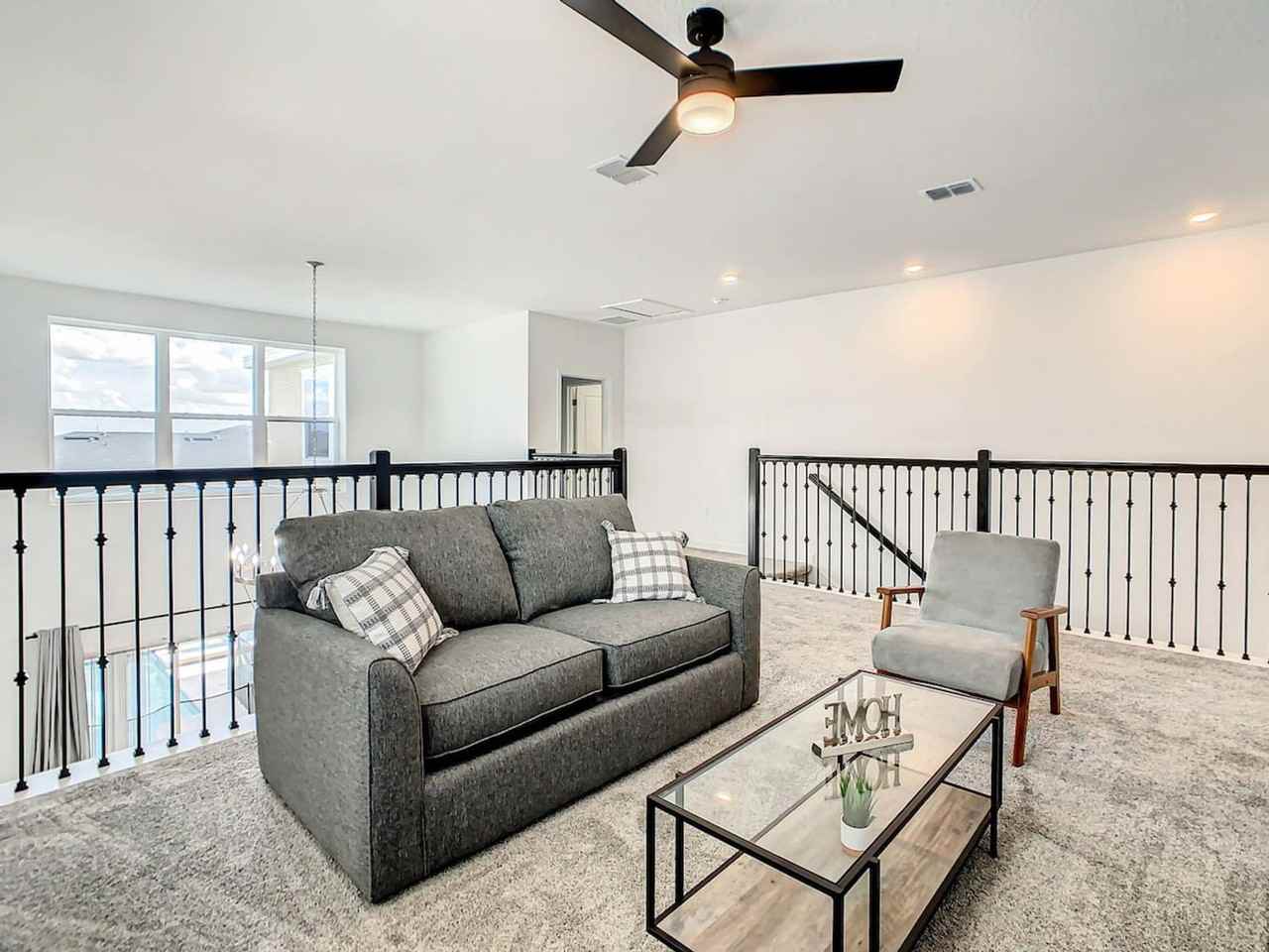 Experience the excitement of the new Epic Universe park just minutes away from this luxurious vacation home. This property offers unbeatable comfort with a private pool and Jacuzzi, a fully equipped kitchen, and a spacious living area. Enjoy the convenience of a garage and free street parking, along with high-speed internet and smart TVs throughout the home. The first floor features a king-size bedroom with a private bathroom, a queen-size bedroom, and a shared bathroom. The second floor includes a bunk bed room, a room with two queen-size beds, and a master bedroom with a king-size bed and en-suite bathroom. A queen-size sofa bed is also available. Indulge in full complimentary access to the resort's amenities, including a gym, heated swimming pools, a lazy river, a water park, and more. The main clubhouse is a short 7-minute drive away, offering additional facilities like a spa, golf, and a family cinema, some of which may incur extra fees. The property itself is equipped with essentials such as bed linens, hair dryers, ironing supplies, and a washer/dryer. Optional services are available for an additional cost, including a pack and play, high chair, early check-in, and late check-out. Enjoy unlimited access to two luxury clubhouses and a private pool and Jacuzzi, though the Jacuzzi is not heated. Additional fees apply for certain resort amenities like the spa and golf. Located in a prime area, this property is close to major attractions such as Sea World, Universal Studios, and Disney World, all within a short drive. Nearby, you'll find shopping outlets, supermarkets, and a variety of dining options. Transportation is convenient with Uber and Lyft services available, and several medical facilities are within easy reach. Guests must be at least 18 years old to book a reservation. The property is strictly for vacation use, and no unregistered guests, smoking, or pets are allowed. Check-in is keyless, with codes provided prior to arrival. A safety protocol is in place to ensure the well-being of guests and staff. A $2,000 security deposit is required for stays of 28 days or more, refundable upon check-out if no damage or deep cleaning is needed. The property features high-speed internet and multiple smart TVs, making it ideal for remote work or entertainment. A laptop computer is not included.
