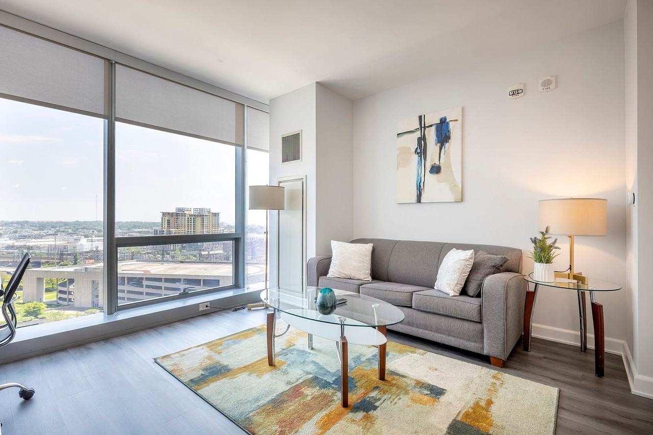Feel at home in this luxury 717 sq. ft. apartment in downtown Stamford. This apartment features floor-to-ceiling windows, a range hood, and a breakfast bar. Enjoy access to the state-of-the-art fitness center and rooftop terrace, complete with fire pits and BBQ grills. There is also a pool and a business center. Parking is not included, but garage parking may be arranged for a fee. Pets are welcome with a fee. Downtown Stamford is a hub of activity, boasting diverse dining options and cultural attractions like The Palace Theatre. Entertainment venues such as the Stamford Museum & Nature Center are also nearby. The vibrant Harbor Point district invites residents and visitors to discover the bustling boardwalk, enjoy waterfront dining, and partake in community events. For outdoor enthusiasts, Cove Island Park provides a picturesque retreat, while Mill River Park offers recreational activities and scenic landscapes. The train station is a short walk away, providing easy access to the city. Quiet hours are between 10 PM and 6 AM. ID and background verification are required for entry. Check-in instructions will be provided via email 7 days and 24 hours before check-in.