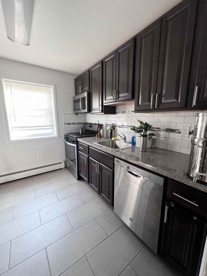 Very nice 1st floor unit with heat hot water included, updated kitchen with dishwasher, refrigerator, micro way, tiled back splash, beautifully hardwood floors throughout, freshly painted, wall ac, tiled bathroom, storage, laundry and parking!