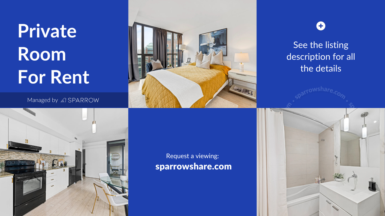 Text me at 437 291 7980 for assistance using SparrowShare Online App Private room for female in a 2 bedroom condo unit at X Condominium, Toronto Bedroom available: 1 furnished Bedroom A: $1580 with Single sized bed (Private bathroom) Solo female occupancy only Utilities included: - Air Conditioning - Heating - Washer - Dryer - Internet - Cable TV Amenities included: - Elevator - Gym - Swimming Pool - Sauna Shared spaces: - Kitchen - Dining Room - Living Room - Balcony Parking: Additional $100 parking fee Minimum Rent Duration: 4 months Payment: Security deposit after signing the agreement, then pay the 1st month's rent before move in-date Address: Charles St E, Toronto, ON M4Y 1T5, Canada Nearest Universities via public transit: Yorkville University (Toronto Campus): Approx 8 minutes walk Toronto Metropolitan University (TMU) - Approx 10 minutes travel time University of Toronto – St. George Campus - Approx 10 minutes travel time George Brown College – St. James Campus - Approx 20 minutes travel time OCAD University - Approx 20 minutes travel time Nearest Landmarks (walking distance): Rabba Fine Foods & Metro Grocery Bloor–Yonge Subway Station Church & Wellesley Village Toronto Reference Library Yorkville Village / Bloor St Luxury Shops House Rules: - No Guests - No Smoking/Vaping/Cannabis - No Pets allowed Additional Benefits: - Tenant Insurance Included: Renting through Sparrow includes tenant insurance at no extra cost, providing you with added peace of mind. - Credit Building: Your rent payments through Sparrow will be reported to credit bureaus, helping you build and boost your credit score over time. Disclaimer: This listing has been syndicated from sparrowshare.com, including its content, rental terms, and images. Sparrow is used to verify the identity and compatibility of those interested. The advertised property is owned and/or managed by Melvin from Sparrow Living Inc.