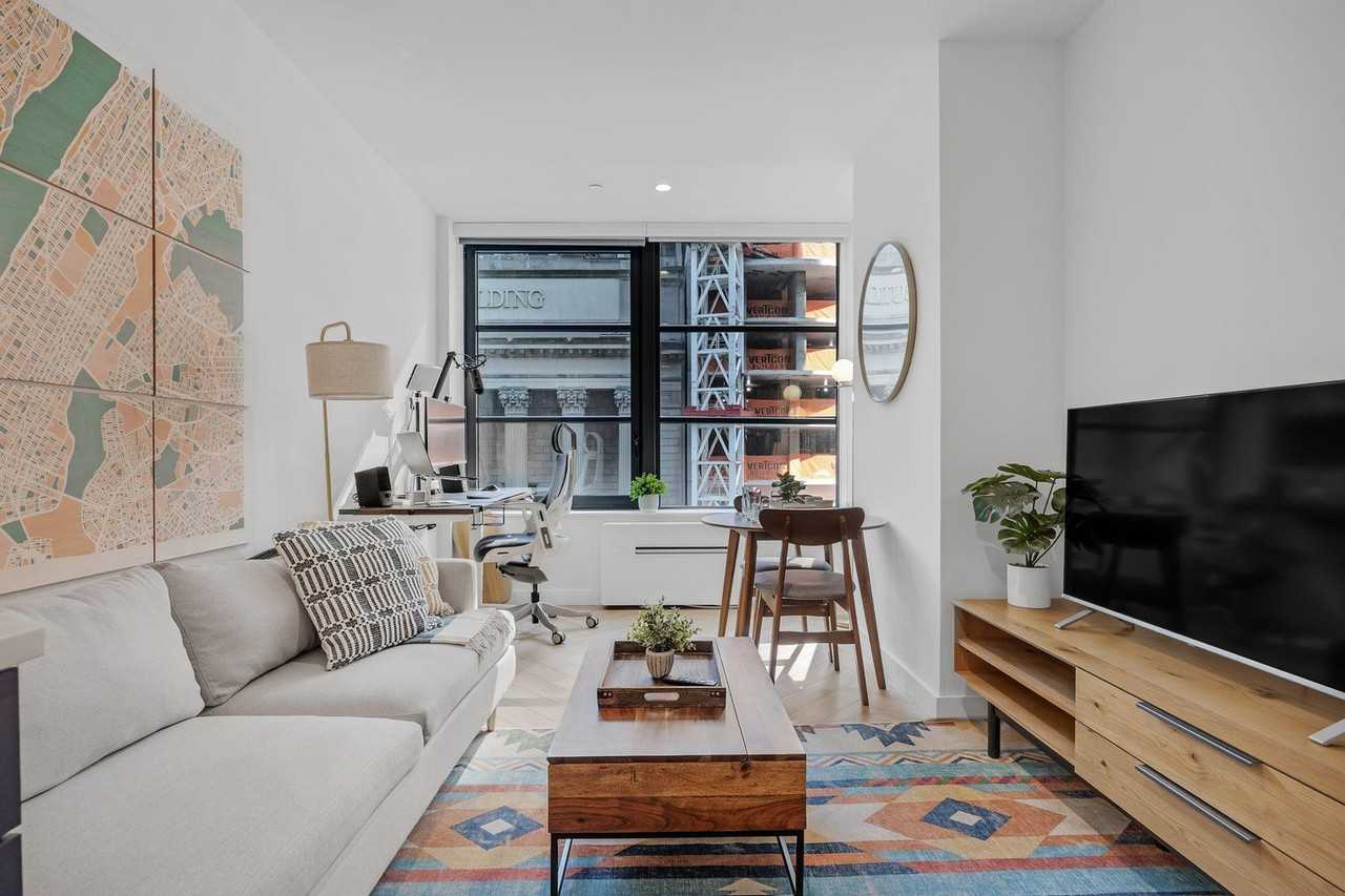 The advertised rate of $7,722/month is the lowest available price, based on a 30 day(s) stay with a move-in date of May 3, 2026. Rates vary depending on the duration of stay, season, and other parameters. For exact pricing and additional pricing components, please visit our website and enter your desired move-in and move-out dates. The rate is applicable when billed upfront; it can be higher if billed in multiple payments. Experience elevated living and feel at home in this fully furnished 1-bedroom apartment in the heart of Midtown Manhattan. Located in Quincy New York, this apartment is your ideal base for both productivity and relaxation. Custom designed for remote professionals and long-term travelers, this stylish and spacious apartment features a separate bedroom for privacy, a fully equipped kitchen with quartz countertops and stainless steel appliances, fresh linens, a full bathroom, a smart TV, and an in-unit washer and dryer. All utilities are included. Enjoy exclusive access to the luxury fitness center with Technogym machines, Peloton bikes, and strength zones, the serenity garden, entertainment rooms with wet bars, large TVs, and elegant seating, a modern co-working lounge with Zoom rooms and communal desks, secure bicycle storage, a 24/7 package room, direct elevator access to the garage, and concierge and security services. Parking is available in nearby public garages and must be arranged independently. Just steps from Bryant Park, Penn Station, and the best of Midtown South, this apartment is centrally located. Enjoy easy access to nearby public garages. Internet speeds are not guaranteed and may vary depending on the device and location within the unit. A laptop computer is not included in the home office set-up. Includes private high-speed internet, an adjustable standing desk, a work chair designed for long hours of use, a 34-inch ultra-wide monitor, a microphone and webcam for professional quality video meetings, computer speakers, an LED streaming light and green screen optimized for presentations and content creation, a keyboard and mouse, and a laptop stand with a triple display USB-C dock to support multi-screen workflows.