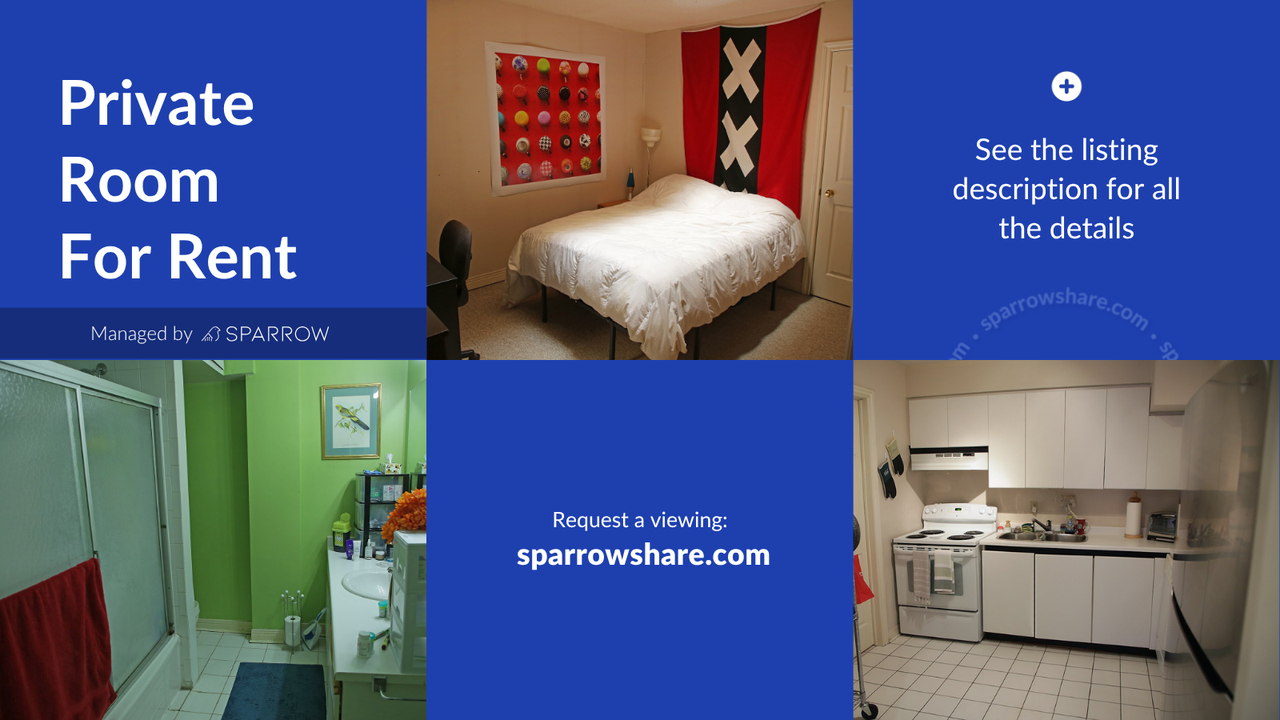 Text me at 437 291 7980 for assistance using SparrowShare Online App Private room in a shared apartment at Yonge Street Bedroom available: 1 Furnished Bedroom A: $1,030 Private room with Double sized bed (Shared bathroom) Solo occupant only Utilities included: - Air Conditioning - Heating - TV stream platforms - Internet Shared spaces: - Bathroom - Dining Room - Kitchen - Living Room Parking: None Minimum Rent Duration:6 months Payment: Security deposit after signing the agreement, then pay the 1st month's rent before move in-date Address: Yonge St, Toronto, ON M4N 2M4, Canada Nearest University via public transit: York University (Glendon Campus) - Approx 10 minutes travel time University of Toronto (St. George Campus) - Approx 25 minutes travel time Toronto Metropolitan University - Approx 30 minutes travel time OCAD University - Approx 30 minutes travel time York University (Keele Campus) - Approx 40 minutes travel time Nearest Landmarks (walking distance): Yonge Street Shops & Cafés (Lawrence–Yonge area) Alexander Muir Memorial Gardens Lawrence Subway Station (Line 1) Lytton Park House Rules: - No Overnight Guests - No Smoking - Cats Allowed Only Additional Benefits: - Tenant Insurance Included: Renting through Sparrow includes tenant insurance at no extra cost, providing you with added peace of mind. - Credit Building: Your rent payments through Sparrow will be reported to credit bureaus, helping you build and boost your credit score over time. Disclaimer: This listing has been syndicated from sparrowshare.com, including its content, rental terms, and images. Sparrow is used to verify the identity and compatibility of those interested. The advertised property is owned and/or managed by Melvin from Sparrow Living Inc.