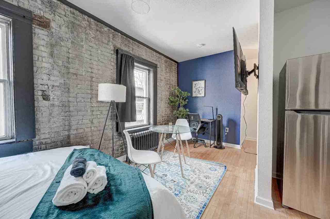 Unwind in style at this chic downtown Milwaukee apartment. Perfectly located in the heart of Central Downtown, you’re steps from award-winning restaurants, unique shops, and historic landmarks. After a day of adventure, return to your cozy, modern retreat to relax, recharge, and feel at home while enjoying the best of Milwaukee living. The living space features an innovative open-concept design that blends the living and dining areas with the kitchen, creating a modern and sleek living experience. The studio features a fully equipped kitchen with a microwave, stove, oven, refrigerator/freezer, toaster, coffee maker and coffee essentials, electric kettle, sink with hot and cold water, trays, glasses, silverware, and pots and pans. The inviting full bathroom is completely private and separated from the main room and is stocked with essential toiletries, including towels, hand towels, and washcloths. Situated in the heart of Milwaukee's popular East Side neighborhood, which is known for its diverse range of activities, food, nightlife, and tourist attractions. Visitors to this area will find no shortage of things to do and explore during their stay. One of the most popular attractions in the area is the Milwaukee Art Museum, located just a short drive or bike ride away. For those looking to experience some of Milwaukee's famous beer culture, there are numerous breweries and beer gardens located throughout the East Side. Foodies will also be spoiled for choice in the East Side, with a wide range of dining options available to suit every taste and budget. When it comes to nightlife, the East Side is home to some of the best bars, nightclubs, and music venues in Milwaukee. For those looking to explore the outdoors, the East Side offers plenty of opportunities for hiking, biking, and other outdoor activities. Overall, the East Side is a vibrant and exciting neighborhood that has something for everyone. Quiet hours are between 10pm and 8am everyday. If there are noise complaints or any violation of this rule, it may result in cancellation of booking and removal from property without refund. There is a strict no-party policy, and if there is a party of any kind, the police will be called and everyone will be removed from the property with no refunds. No unauthorized guests are allowed at the unit, and there is a $100 fine per guest if discovered. Smoking is prohibited without exception on this property, and if any signs of smoking are found in the unit or on the premises, a fine of $500 will be imposed, no exceptions. If you are found to have brought pets without prior notification, there will be a $500 fee. You may be charged extra for cleaning if the property is left in a state that necessitates additional cleaning. Lost or unreturned keys will incur a charge of $80 for key replacements and $150 for key fob replacements. For delayed checkout, there will be a $500 late check out fee, no exceptions. Includes an office desk and chair.