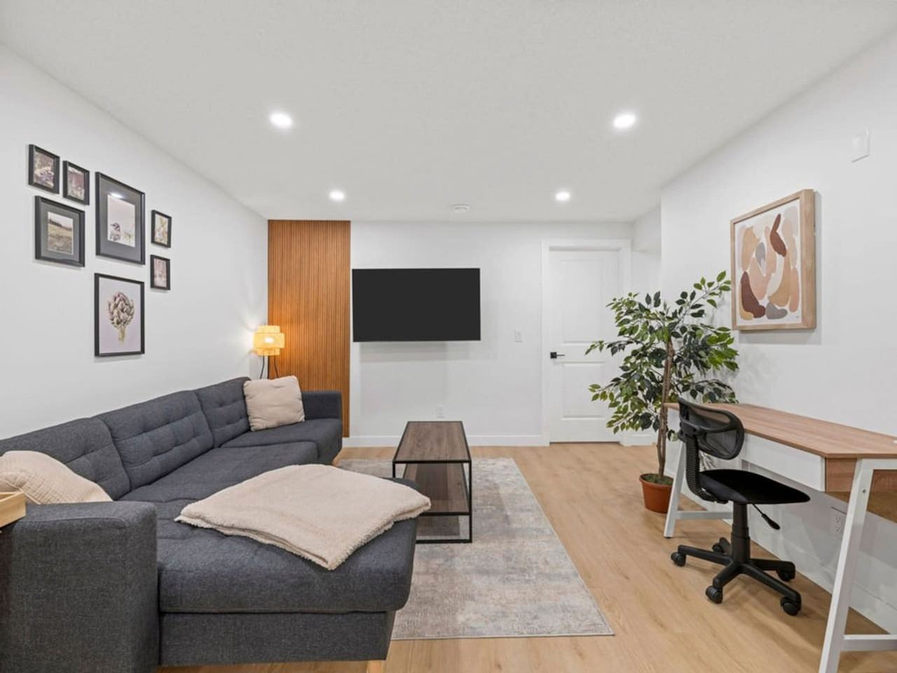 The advertised rate of C$2,499/month is the lowest available price, based on a 30 day(s) stay with a move-in date of March 30, 2026. Rates vary depending on the duration of stay, season, and other parameters. For exact pricing and additional pricing components, please visit our website and enter your desired move-in and move-out dates. The rate is applicable when billed upfront; it can be higher if billed in multiple payments. Feel at home in this calm, stylish 2-bedroom basement suite in Edmonton's High Park neighborhood, comfortably accommodating up to 5 guests. This well-equipped home is minutes from parks, dining, West Edmonton Mall, and downtown. The main floor is occupied by the homeowners, but is separated from the basement for full privacy and safety. The back door exiting to the yard may be shared from time to time. Inside, you can enjoy a Smart TV and fast Wi-Fi. The fully stocked kitchen features stainless steel appliances such as a microwave, fridge, electric stove, and dishwasher, along with glasses, mugs, dishes, and cutlery. The laundry room is equipped with a washer and dryer, as well as complimentary detergent, an iron, and an ironing board. Plenty of free street parking is available around the home. Located in the charming and peaceful High Park neighborhood, this apartment is minutes from downtown and offers a blend of tranquility and convenience. Enjoy tree-lined streets and nearby green spaces like High Park and Coronation Park. Local cafes, restaurants, and shops add to the charm, while easy access to major roads and transit makes getting around a breeze. It's a 10-minute drive to West Edmonton Mall and 15 minutes to Rogers Place. Convenient bus routes connect you to Edmonton’s bus and train system, and ride-sharing services are readily available. Quiet hours are from 10 PM to 8 AM, and a $500 fee will be charged if there is evidence of any unauthorized events or parties. Pets are not permitted, and a minimum $250 fee will be charged if there is evidence of any unauthorized pets, which may increase to cover additional cleaning or damages. Smoking, vaping, or illegal substances are strictly prohibited inside the property, and violations incur a minimum $400 fee, with additional cleaning charges if damage or lingering odors are found. Unauthorized guests will be asked to leave, and unregistered guests will incur a $40 fee per person per night. A $50 fee will apply if you check out more than 30 minutes past the scheduled time without prior notice or approval, with an additional $50 charged for every subsequent 30 minutes up to 2 hours. Where applicable to properties using physical keys or access fobs, a $250 fee will apply for any items that are lost, damaged, or not returned after checkout. Includes a desk space to work remotely. This is a basement suite, and while we strive to minimize noise and tenants follow quiet hours, occasional footsteps and conversation may be heard from above due to the nature of the space. We recommend bringing earplugs if you’re a light sleeper, just in case. Registration Number: 547492677-001