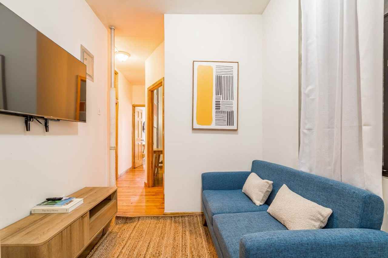 Feel at home in this charming 2-bedroom apartment in Midtown West. This centrally located apartment is on the 4th floor. This lovely apartment comfortably sleeps 5 and is fully equipped with all the basics and necessities for your convenience. Features include a flat screen TV, wireless internet, air conditioning and heat, a dining table that seats 4, hardwood floors, and exposed brick. The beautiful kitchen provides all utilities necessary. Located within walking distance of Times Square. Kindly note there is a required security deposit for this unit. The partner will reach out to you to collect it and handle it offline upon your reservation
