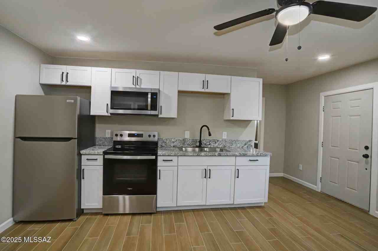 Property Status: Active Be the first to live in this newly built, charming modern 2-bed/ 2-bath cottage! The open-concept kitchen boasts NEW stainless-steel appliances, shake cabinets, dual sink with garbage disposal, & beautiful granite counter tops. Both bedrooms boast spacious walk-in closets, plus bonus closet in dining area. Primary bathroom has an elegant double vanity and matches the chic style of the secondary bathroom. Split-bedroom floorplan and cordless blinds on dual-paned windows create maximum privacy. Wood-styled ceramic tile throughout. HVAC and remote-controlled ceiling fans in major rooms keep you cool all summer! Separate parking area included. Want to live near loved ones? Ask about the stunningly renovated Main house, listed separately. Convenient location, close to shopping and dining. Office Phone: (520) 907-5300 Copyright © 2025 Multiple Listing Service of Southern Arizona. All rights reserved. All information provided by the listing agent/broker is deemed reliable but is not guaranteed and should be independently verified.