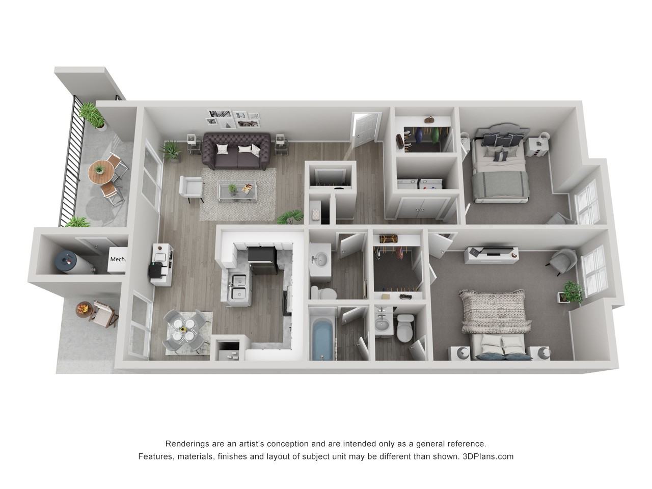- Spacious one, two and three-bedroom floor plans