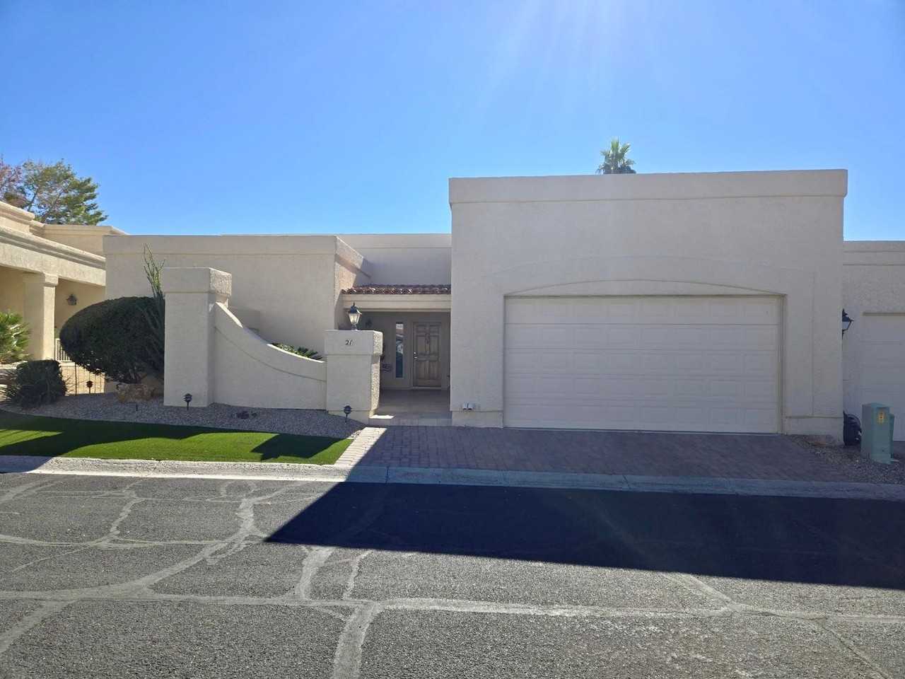 Welcome to your golf course dream home in Lake Havasu City, AZ! This large townhome, located on Lake Havasu Golf Club golf course offers a unique blend of comfort and serenity. Includes two spacious bedrooms, two full bathrooms, plus a large office / den. This well-designed living space offers an expansive open-concept floor plan with 9' ceilings, living room offers surround sound. The abundance of windows allows for panoramic views plus light and bright living spaces. The private covered rear patio with a 72" ceiling fan overlooks the fairway, pond and fountain on the golf course, perfect for enjoying the beautiful ambiance and tranquility. Located within a sought-after, quiet, and beautifully maintained gated community. An oasis entirely surrounded by golf course, it offers a sense of privacy and exclusivity. Equipped with a brand new high efficiency central A/C ensuring year-round comfort. The home also features a gas fireplace, creating a cozy atmosphere during the cooler months. The private community pool & spa are just across the street, providing a perfect spot for relaxation and recreation. Spacious attached, 27' deep, 2 car garage with Mini-split A/C, Large work counter and plenty of cabinets. The H2O Concepts whole house water filtration system does not require salt. Well-behaved pets are welcome with owner approval — because luxury living should include your four-legged companions. Our company requires an online completed application prior to showing @www HavasuRentalHome com Please contact Tracy for more information