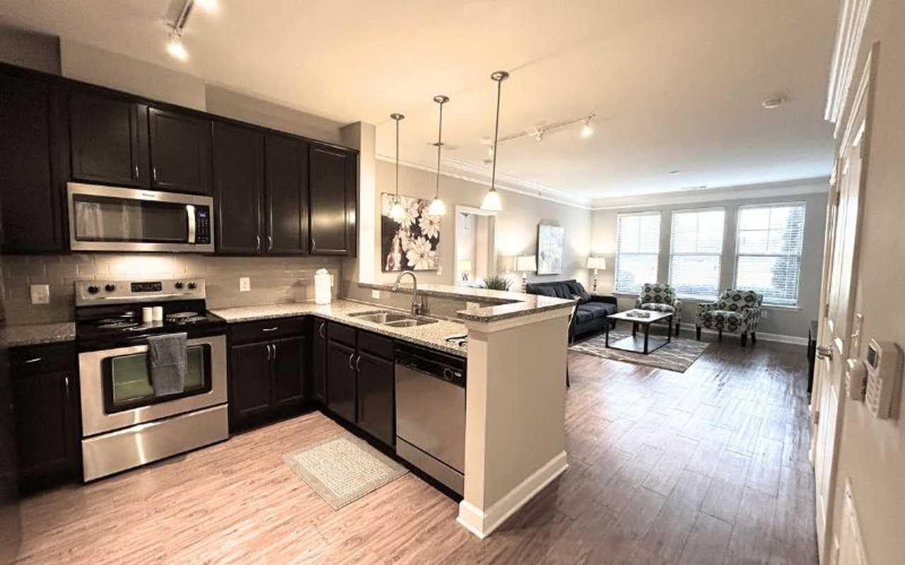 Feel at home in this apartment at Regency at Johns Creek Walk, surrounded by parks and trails. This pet-friendly apartment offers access to many community amenities. Streamline each cooking venture with state-of-the-art and easy-to-clean stainless-steel appliances, granite countertops, a dishwasher, and a refrigerator with an ice maker. Luxurious aesthetics await at every turn with plush carpeting, designer plank flooring, spacious 9-foot ceilings with crown molding, and contemporary cabinetry and doors with designer hardware. An in-home washer and dryer, intrusion alarms with optional monitoring, and a walk-in closet help keep you organized and secure, while onsite management, package receiving, and high-speed media capabilities provide peace of mind. Take advantage of the extra time you’re afforded by indulging in our many community amenities. Dive into the swimming pool or get in your reps at the fitness center with a weight room. Enjoy the Sunday by grilling at the outdoor BBQ station near the onsite playground, then finish off the day by curling up with a book near the outdoor fireplace.
