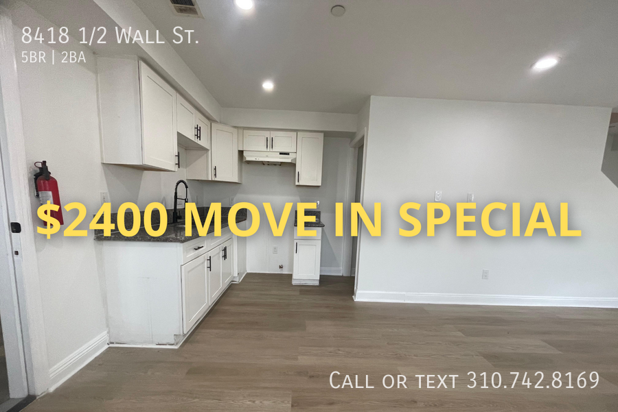 Two-story townhouse with 4 bedrooms and 2 baths, featuring washer/dryer hookups, a bonus room, and gated parking with garage. Comfortable and functional layout in a central LA location. We're offering a $2,400 Move-In Special reducing your rent from $3,045.00 to $2,845.00! That's $200 OFF per month for 12 months, for a total savings of $2,400.00! This limited-time offer is available for approved applications and immediate move-ins only. This special offer starts today, December 19, and will end on December 26. Welcome to 8418 1/2 Wall St, Los Angeles, a spacious and well-designed 4-bedroom, 2-bath townhouse offering plenty of comfort and flexibility for families or shared living. This home features a thoughtful two-level layout: The second floor includes the main living area, kitchen, washer/dryer hookups, and bedrooms. The first floor offers a bonus room with a large closet, perfect for a home office, gym, or guest space. Additional features include: Central heating system for year-round comfort Gated parking with garage (fits 2 cars, available for an additional fee) Bright interiors with ample storage Convenient location near major streets and local amenities Enjoy privacy, functionality, and value in this well-maintained townhouse — ideal for anyone seeking comfortable living in a central Los Angeles neighborhood. Schedule your tour today! Bedrooms Do Not Share Walls Garage And Parking Available For Extra Fee Garage Available That Fits 2 Cars Gated Parking Available Heater Large Beautiful Town House Pets Allowed For An Extra Fee Plenty Of Space Stove Town House Utilities Not Included Washer And Dryer Hook Ups