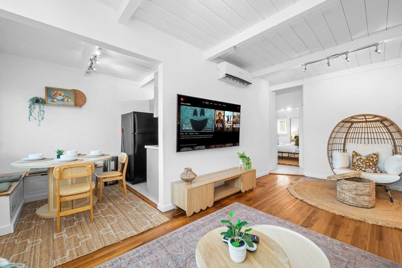 Feel at home in this private Grant Hill sanctuary, perfectly positioned near the heart of San Diego. This unique, detached home offers total privacy with no shared walls, making it ideal for families and remote work-friendly professionals. This standalone home offers a peaceful and private experience. The primary bedroom features a plush queen bed with high-thread-count linens and extra pillows. The second bedroom is perfect for families or friends, featuring a versatile daybed with a pull-out twin trundle, providing two twin beds. Both rooms are equipped with blackout shades and blinds, fans, and spacious closets stocked with extra linens. The full-sized kitchen is equipped with a premium 5-burner gas stove and oven, a full-size refrigerator with freezer, a toaster, and a Keurig coffee station. It is fully equipped with a professional knife set, cooking utensils, plates, and silver for up to 4 guests. Relax in the bright, open living space with a 70-inch smart TV and a stylish egg chair. Stay comfortable year-round with a powerful AC/heating split unit. One free designated parking spot is included, located behind the rear gate. Located within a secure, gated complex, this apartment is steps away from a grocery store and a local-favorite taco truck. Reach the San Diego Zoo, Convention Center, and Downtown Gaslamp Quarter in just 5–15 minutes. Experience seamless streaming and lag-free video calls with 300 Mbps+ high-speed internet, perfect for remote work. The complex features gated front and back entrances with 24/7 exterior surveillance. The plumbing systems are sensitive; please do not flush any paper products except toilet paper. A dedicated bin is provided for disposal. Registration Number: STR-12804L, 655104