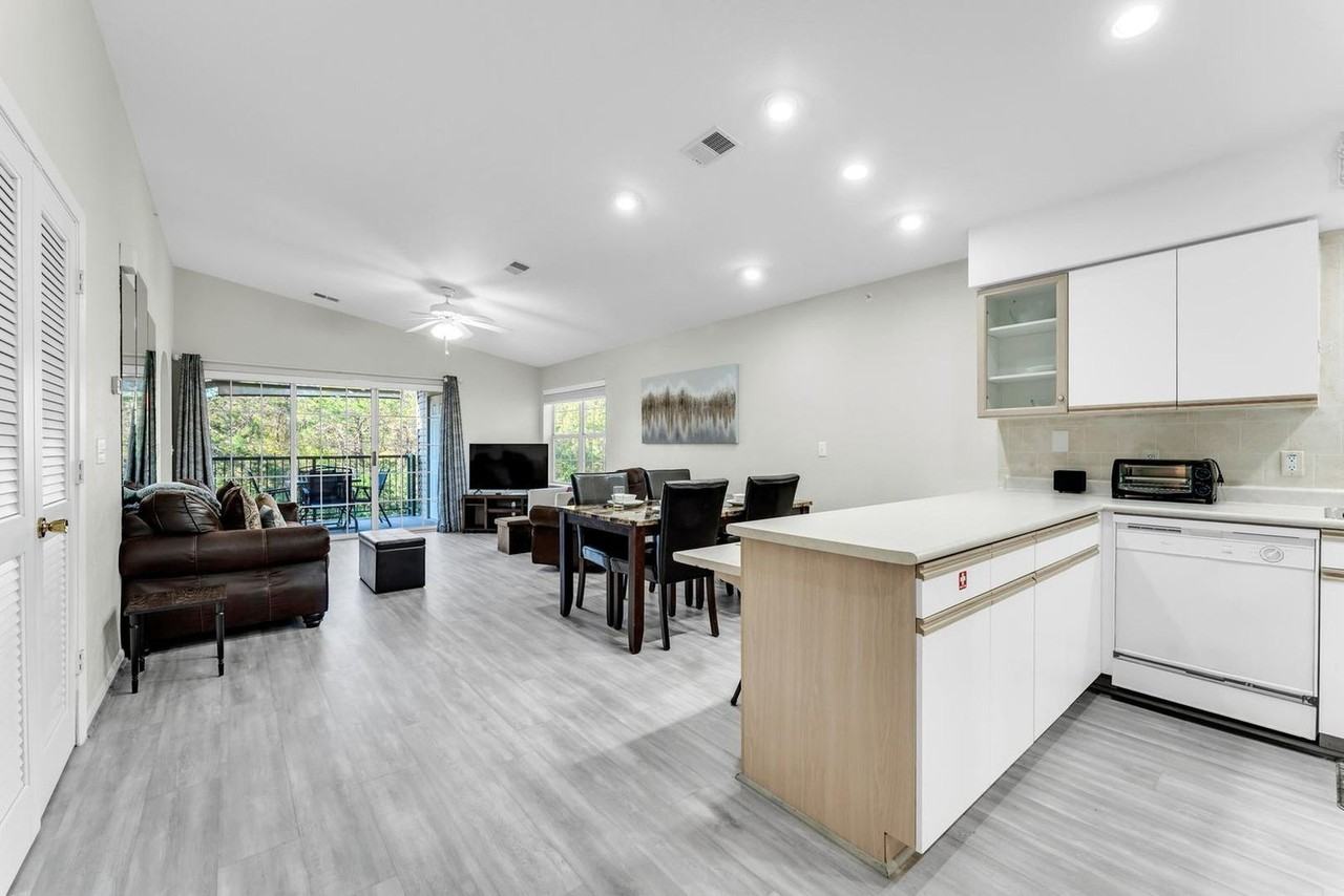 Enjoy a peaceful stay and feel at home in this modern 2-bedroom, 2-bathroom condo in Branson, just minutes from Branson’s top attractions. This condo offers a fully equipped kitchen, dining area, and cozy living room that opens to a private balcony with outdoor seating. The condo includes new carpeting, flooring, and updated bathrooms, creating a fresh and inviting atmosphere. Additional comforts include air conditioning, a washer and dryer, Wi-Fi, a TV, and a coffee maker. Pets are welcome with a fee of $50 per pet per night. Guests can also access great amenities including four outdoor pools, a fitness center, tennis and basketball courts, pickleball, shuffleboard, and even a golf course nearby. Dedicated parking is available. Located near golf courses, entertainment venues, and shopping, this condo is perfect for families or couples seeking comfort and convenience. Quiet hours start at 10 PM. There is a $300 penalty for smoking on the property, and you will be dismissed from your rental without a refund. There is a $250 penalty if noise level, parties, or other obscene behavior requires a police callout, and you will also be dismissed from the property without a refund. There is a $100 penalty for leaving trash outside the entrance to your property; once your trash cans are full, please deposit trash in the large trash cans located at the building entrance. Please do not throw trash, paper towels, or toilet paper in the toilet to avoid clogging. Damage to the interior of the property or common areas will result in a pro-rated auto-chargeback from your booking account. On checkout, please turn off the lights, the AC unit, water, and gas/stove, and lock the door behind you. Check-in is any time after 4 PM, and check-out is at 10 AM. The master bedroom features a king-size bed, while the second bedroom has a queen-size bed, and the living room includes a sofa bed—perfect for up to 6 guests.