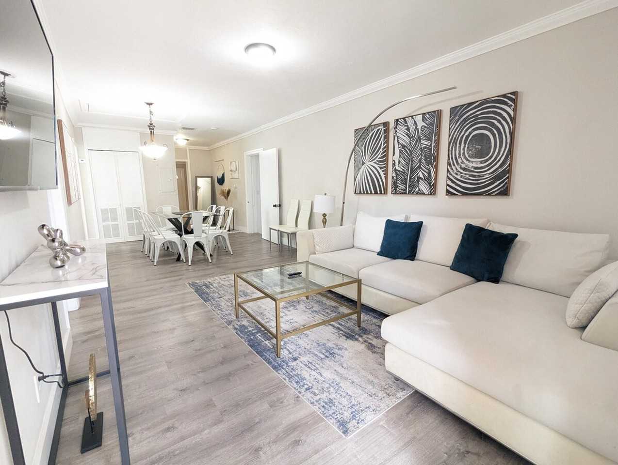 Discover this cozy 4-bedroom, 3-bathroom home with modern updates and original charm, where you'll feel at home. This retreat features a fully equipped kitchen with a full-size fridge, stove, oven, coffee maker, toaster, blender, basic cookware, utensils, and tableware. The relaxing living area includes a cozy sofa and a 50-inch TV. Enjoy the outdoor hot tub, exclusively for your use, which accommodates up to four people. Access to a paid washer and dryer is available on the property for $1.75 per wash and $1.75 per dry. The dining area features a large table that comfortably seats eight, perfect for family meals or gatherings. The master suite has a king-size bed and a spacious master bathroom with a full-size shower, separate jacuzzi tub, dual vanity, and toilet. The second bedroom has another king-size bed. The third bedroom contains two queen beds and shares a Jack and Jill bathroom with the second bedroom, featuring a double vanity, full shower, and toilet. The fourth bedroom, located off the kitchen, houses a full bed and has easy access to its own full bathroom with a shower. There are four studio units on the property occupied by long-term tenants, which are completely separate from the main house. Quiet hours are between 9 PM and 6 AM. This is a strictly non-smoking property, including all indoor areas and the hot tub vicinity. Check-in is after 4 PM using a self-check-in process with a secure key lockbox, and check-out is by 11 AM. Kindly note there is a required security deposit for this unit. The partner will reach out to you to collect it and handle it offline upon your reservation