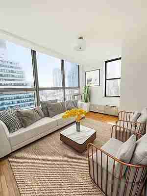 Bask in sunlight and skyline views in this luminous one-bedroom, one-bath residence where contemporary design meets thoughtful versatility. Oversized windows flood the open living area with natural light, accentuating wide-plank floors, recessed lighting, and a flexible layout that easily adapts to work-from-home or entertaining needs. The kitchen is appointed with stainless steel appliances, stone countertops, and streamlined cabinetry that balances form and function, while the bathroom offers spa-inspired fixtures and refined tilework for a polished, everyday retreat. Generous closet space and smart storage solutions keep the space feeling open and uncluttered, letting the clean, modern finishes take center stage. Everyday living is elevated by a collection of lifestyle amenities crafted for convenience, wellness, and social connection. Stay active in the fully equipped fitness center or find calm in dedicated wellness and yoga spaces; when its time to unwind, the residents lounge and private entertainment room provide stylish spots to host friends or catch a film. Outdoor living comes to life on landscaped terraces and a rooftop lounge with sweeping city vistasideal for sunset gatherings or quiet mornings with coffee. Practical services including a 24-hour attended lobby and concierge, secure package handling, bike storage, on-site management, and laundry facilities streamline daily routines so you can focus on living. Photos shown are model photos from the same building and do not represent the exact finishes of the available unit.