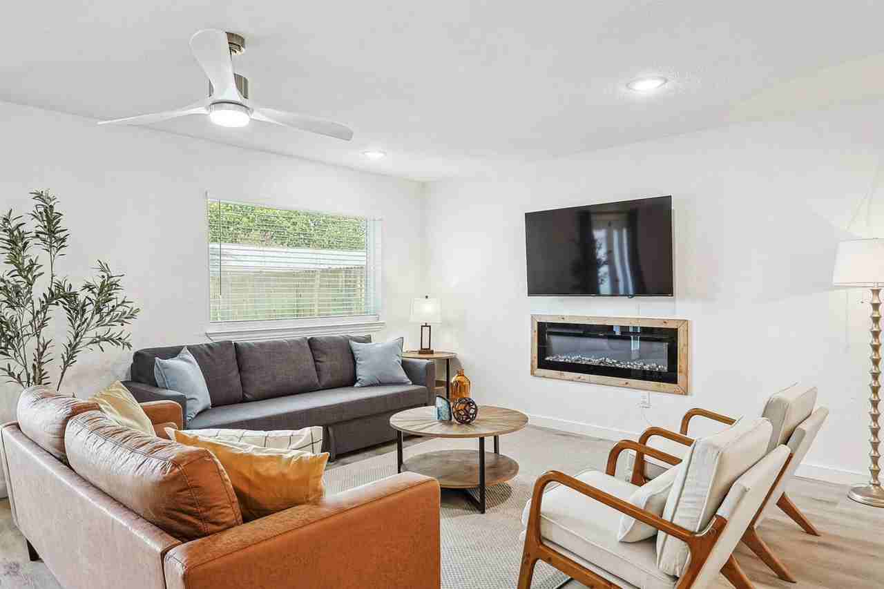 Feel at home in this fully remodeled home that offers open-concept living with a spacious layout perfect for relaxing or entertaining. This home features three beautifully furnished bedrooms, two bathrooms, and a private fenced backyard. The fully equipped chef’s kitchen is stocked with all essentials and stainless steel appliances, including an oven, fridge, freezer, stove, and microwave. Cookware and utensils are provided. There are two dining areas to choose from: a circular glass table with seating for four and a spacious wooden table with seating for six. The living area features cozy sofas, a rug, stylish coffee tables, a smart flat-screen TV with high-speed Wi-Fi, an electric fireplace, ambient lighting, and French patio doors leading to the backyard. Other amenities include free parking for two cars in the garage and an in-unit washer and dryer. House-trained pets are welcome with a non-refundable pet fee of $150 per pet (maximum of 2 pets per stay). Perfectly situated between Dallas and Fort Worth and just minutes from DFW International Airport, Irving is at the heart of the Metroplex. Local highlights include the Toyota Music Factory (6 min drive), the Ruth Paine House Museum (4 min drive), the Jaycee Park Center for the Arts (5 min drive), and Irving Mall (5 min drive). Explore nearby Dallas attractions such as the Perot Museum of Nature and Science (12 min drive), the Dallas Arboretum & Botanical Garden (22 min drive), and Reunion Tower (12 min drive). If driving is something you would like to avoid during your stay, Uber and Lyft are only minutes away 24/7. Parties or large unauthorized gatherings of any sort are not allowed. Smoking of any type is not allowed, and violations are subject to a $450 fine plus the cost to clean, deodorize, and repair damages. Check-in is at 4pm and checkout is at 10am. Registration Number: 103592