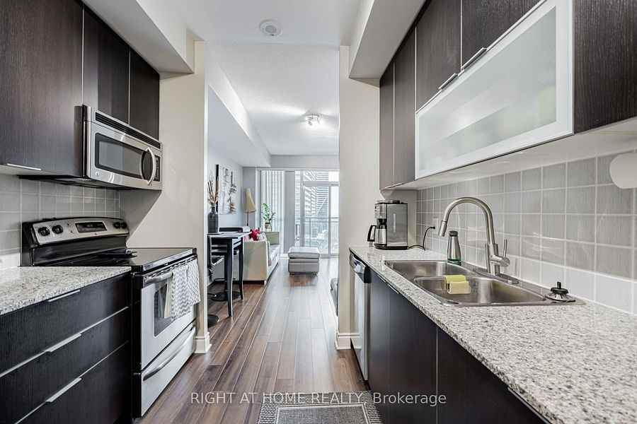 ***POSSESSION JANUARY 15th, 2026***This sun-drenched one-bedroom condo comes with 1 parking and 1 locker! High ceilings and an open-concept living space make it great for entertaining. Walk-out balcony from the living area and bedroom with a water view! Large windows, modern kitchen cabinets with tons of storage, stone countertops, stainless steel appliances, and wood flooring throughout-no carpet! Steps to all your daily needs including restaurants, cafes, Metro, Shoppers, Starbucks, TD, BMO, and the LCBO. The waterfront is just steps away for late-night walks and bike rides, with direct access from the building to Rabba Foods. Enjoy 5-star hotel-like amenities including indoor pool & BBQ area, gym, guest suites, visitor parking, 24-hour concierge, and much more! Perfect commuter location with streetcar access and the QEW right at your doorstep. Heat, water included. Regards,Maria NaumovaSales RepresentativeRoyal LePage Terrequity Realty, Brokerage3082 Bloor Street West, Toronto(416)-231-5000 officewww terrequity com