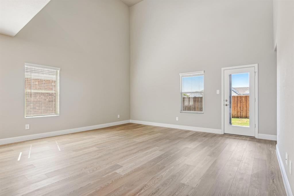 Welcome to this beautiful two story home in the Tesoro at Chisholm Trail Ranch community. This new construction, energy efficient home features an open floor plan and is built on the popular Beckley design by Meritage Homes. Property Details Bedrooms: 5 Bathrooms: 4 (3 full, 1 half) Square Footage: 3,627 sq ft Garage: 2 car attached garage Year Built: 2025 Interior Highlights The home makes a striking impression with a front flex space and a living room featuring a volume ceiling. The kitchen includes white cabinets, veined white quartz countertops, and a kitchen island, perfect for entertaining. The flooring is a mix of light tan EVP (Engineered Vinyl Plank) and cozy gray beige tweed carpet. A second floor game room provides an additional living area. The primary bedroom is on the first floor and features dual sinks, a separate shower, and a walk in closet. Exterior and Community The home is situated on a landscaped lot with a large backyard and a covered patio porch. The exterior is a combination of brick and rock stone. The community offers amenities such as a resort style pool and is zoned for the Crowley ISD school district.