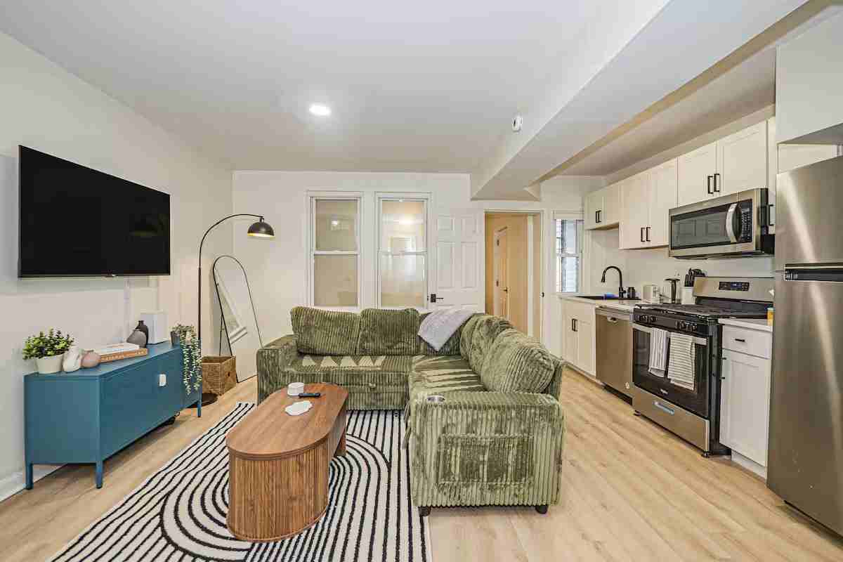 About This Property This well-located 2BR home offers a comfortable and practical layout ideal for long-term renters. Set in a quiet residential neighborhood, the home provides convenient access to local restaurants, shops, parks, and public transportation, making everyday living simple and stress-free. Living Room: A warm and cozy living area with a TV and a pull-out sofa bed—great for relaxing, working from home, or hosting short visits from friends or family. Kitchen: A fully equipped kitchen featuring a microwave, coffee maker, stove, dishwasher, and freezer. Perfect for daily cooking and longer stays. Bedrooms: Bedroom 1: Queen bed, TV, and a dedicated workspace for remote work or study. Bedroom 2: Queen bed and TV, offering a quiet, comfortable retreat. Bathroom & Laundry: A full bathroom with a bathtub, plus an in-unit washer and dryer for added convenience. This home is designed for comfort, functionality, and easy day-to-day living—ideal for professionals, couples, or small families looking for a long-term rental. Access: Private home with a dedicated entrance and secure smartlock access.