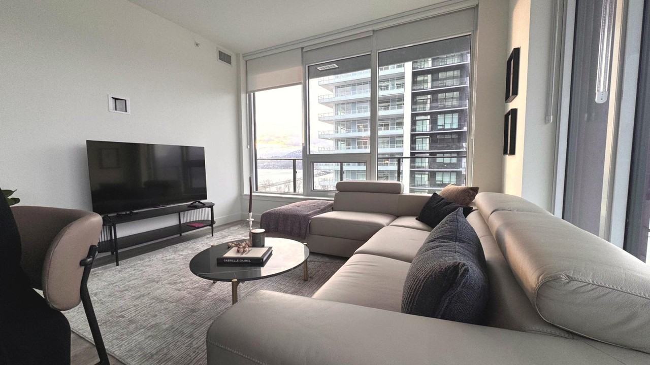 The advertised rate of C$2,221/month is the lowest available price, based on a 1 month(s) stay with a move-in date of April 2, 2026. Rates vary depending on the duration of stay, season, and other parameters. For exact pricing and additional pricing components, please visit our website and enter your desired move-in and move-out dates. The rate is applicable when billed upfront; it can be higher if billed in multiple payments. Soak up breathtaking lake, mountain, and marina views from this modern 2-bedroom, 2-bath luxury condo in downtown Kelowna. Floor-to-ceiling windows fill the space with natural light, while a sleek chef’s kitchen, elegant living area, and spacious balcony create the perfect retreat. Feel at home in this private high-rise unit. This condo features a bright living area with a sofa, TV, and large windows facing the lake. The fully equipped kitchen includes cooking essentials and a functional island set-up. For your comfort, there is central heating and air conditioning, and an in-unit washer and dryer. Enjoy full access to resort-style amenities, including a pool, hot tub, gym, steam room, lounges, games rooms, golf simulator, and co-working spaces. Located in the heart of downtown Kelowna, this waterfront high-rise offers unbeatable access to the marina, sandy beaches, walking paths, and the vibrant cultural district. You are steps from cafés, restaurants, breweries, boutique shops, Prospera Place, and the city’s most scenic parks, all framed by Okanagan Lake’s iconic beauty. Downtown Kelowna is a 3-minute walk, Kelowna Art Gallery is a 2-minute drive, City Park Beach is a 6-minute walk, Knox Mountain Park is a 6-minute drive, Kelowna General Hospital is a 9-minute drive, Orchard Park Mall is a 13-minute drive, and YLW Airport is a 25-minute drive. The condo is centrally located for walking, biking, or driving. Most attractions are within minutes. Major transit routes run along Water Street and nearby Harvey Ave (Hwy 97), providing easy access across Kelowna. Ride-share, taxis, scooters, and bike paths are readily available. No parties, events, or large gatherings are allowed. Smoking is prohibited in the property and its vicinity. No pets are allowed. The dining area includes seating for meals or remote work.