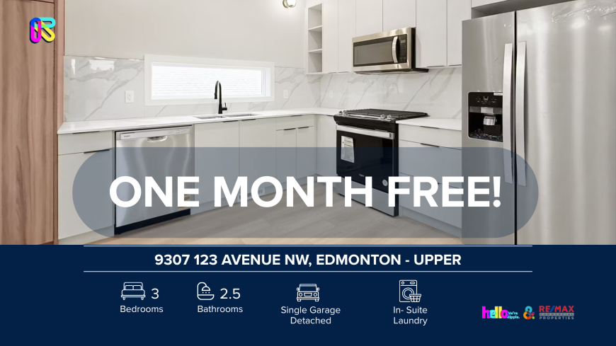 ZMP96888713 - Modern 3 Beds, 2.5 Baths Main Floor/ Upper No Pets Allowed ONE MONTH FREE IF MOVE-IN BY 12/23/2025 Welcome to your new home at 9307 123 Avenue Northwest - Upper a modern and well-maintained 3 beds / 2.5 baths / Main Floor/ Upper offering comfort, space, and convenience. Ideally located close to shopping, schools, parks, and transit. _____________________________________________________________ SHOWINGS: Conducted in an open-house format book your appointment today! https ext leasey ai listings ripple 9307-123-avenue-nw-edmonton-upper Prices, availability, and promotions are subject to change without notice. VIDEO TOUR: https youtu be NBvZfhj4wdo ____________________________________________________________ PROPERTY DETAILS: - Furnished or Unfurnished: Unfurnished - Pets: No Pets Allowed - Smoking: Non- Smoking - Parking: Single Garage Detached - Storage Included: No - Laundry: In- Suite Laundry - Management Type: Full Management - Lease Term: Long Term _____________________________________________________________ UNIT FEATURES: - Bright Open-Concept Living Room: A spacious and inviting layout, perfect for relaxing evenings or hosting guests. - Stylish Modern Kitchen: Equipped with all appliances and designed with generous cabinet storage to keep your space clean and organized. - Seamless Dining Area: Flows effortlessly into the living room, creating an ideal setup for gatherings and everyday meals. - Three Comfortable Bedrooms: Each offering ample storage for clothing and accessories, providing both comfort and functionality. - Window Coverings Included: Enjoy added privacy and customizable natural light throughout the home. ____________________________________________________________ UTILITIES: - Utilities Included: No Utilities Included Shared Utility Unit: Utilities split between 2 units: 60% Main (Upper), 40% Secondary (Lower). Deposit: $350 for Main, $225 for Secondary (first 3 months of tenancy). Here\'\'s a helpful tool you can use to get a rough estimate of utility costs. Just check out the link: https ucahelps alberta ca cost-comparison-tool _____________________________________________________________ LOCATION HIGHLIGHTS: - Very high walkability: The area has a Walk Score of 72 / 100 (described as Very Walkable), meaning daily errands and amenities are easily within reach. - Good transit access: Public transit is well-served nearby, making commuting or accessing other parts of the city convenient. - Shopping & convenience: There are multiple shopping centres within ~1.8 km of the property, making groceries, retail and services easily accessible. - Parks & green space: The listing mentions nearby Parks, Pathways, Greenspaces, which support an active lifestyle and outdoor living. - Family-friendly: The neighbourhood listing calls out that the location is close to schools, parks helpful for families or long-term residents. ONE MONTH FREE offer: A special savings equal to one month\'\'s rent (maximum), spread evenly across your 12 month lease. For leases with initial term less than 12 months, the incentive will be prorated accordingly. Don\'\'t wait properties like this don\'\'t last long.