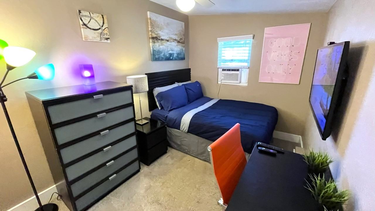 Private bedroom with shared bath, in house a few miles from ERAU, DSC, BCU, and flight schools. Room is private and the rest of the house is shared, you will have full access to kitchen, living room, bathroom, and laundry. Room features 55" Roku smart TV, full bed, computer desk, desk chair, and modern furniture. Fully furnished as shown in pictures and all utilities included in the rent. Common areas in the house are cleaned every three weeks by professional maid service. Room is for one person only, NO Pets, No Smoking, No Excessive Drinking, No Drugs, No Slobs and No Party People. You must be ok with keeping the house clean and picking up after yourself. If you are a messy person this is NOT the place for you. This is not a party house for having people over frequently. No more than one guest allowed over once per week. Month by month, move out anytime with 30 days notice. Reservation fee plus first months rent moves you in.
