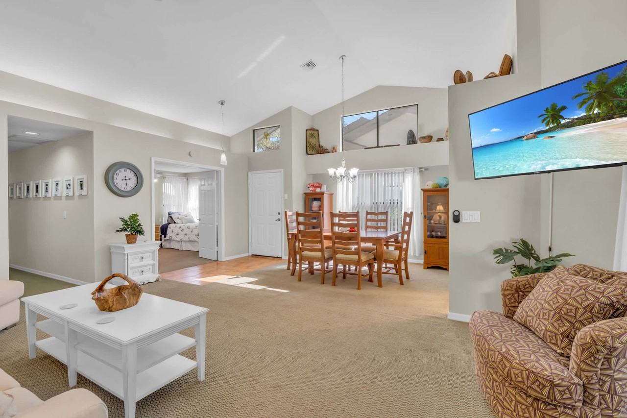 Feel at home in this exclusive attached villa tucked within the lush Burning Tree enclave of gated Bonita Bay, promising both privacy and luxury. This spacious villa features a king-size bed, queen-size bed, and two twin beds, plus a lavish en suite bathroom, making it ideal for families or groups seeking a seamless, well-appointed getaway. This villa offers a well-stocked kitchen, 3 bikes, and 4 beach chairs for a seamless and relaxing getaway. There are multiple dining options: a formal dining area that seats six, a cozy kitchen nook for four, and an outdoor table on the lanai that seats six more, perfect for alfresco meals. The spacious, open-concept family room features a large sectional sofa, a coffee table, and two swivel accent chairs, enhanced by tall ceilings and an abundance of natural light. Guests can access the lanai from the kitchen, family room, or main bedroom. A full-sized laundry room is located just off the garage. Inside the garage, guests will find two cruiser bikes, one three-wheeled bike, and four beach chairs available for their use. The garage is available for guest use as well for parking their car during their stay. Guests can enjoy the private community pool and a screened-in pool house. Staying here grants access to all that Bonita Bay offers. Discover serene nature trails and stunning views at Estero Bay Park, where an 800-foot boardwalk winds through coastal mangroves to a private pier. Enjoy family-friendly amenities, including a playground, picnic areas with gas grills, and a Monarch Way-Station Butterfly Garden. History lovers will appreciate the park's archaeological significance, marked by ancient Native American shell mounds. For those seeking active pursuits, head to Riverwalk Park along the Imperial River, which features a state-of-the-art bocce facility, newly renovated pickleball and tennis courts, a basketball court, and a boat ramp. Kayak storage and launch areas offer direct access to Estero Bay, while the Parcourse fitness trail and various picnic spots round out this inviting park. Spring Creek Park, along a pristine waterway, features kayak and canoe storage, a launch dock, bocce and basketball areas, nature trails, and an observation deck. Savor craft cocktails and delicious daily specials at Backwater Jacks Bar and Restaurant, right within the community gates. Pets are not allowed. Quiet hours are between 10 PM and 8 AM. Please do not rearrange the furniture. Please report any damage or malfunction to the host right away so that we can repair or replace the damaged item. It is best to have a vehicle with you as Bonita Bay is a large metro area. The Fort Myers International Airport is less then a 20 minute drive from the community! Please note: the Bonita Bay beach park is currently being remodeled and will not be available for the 2025 season. For the 2025 season, the Bonita Bay beach shuttle which has a stop just outside of Burning Tree, makes stops at Doc's Beach House on Bonita Beach and Lover's Key State Park beach. Registration Number: Florida state permit number: #DWE2102775