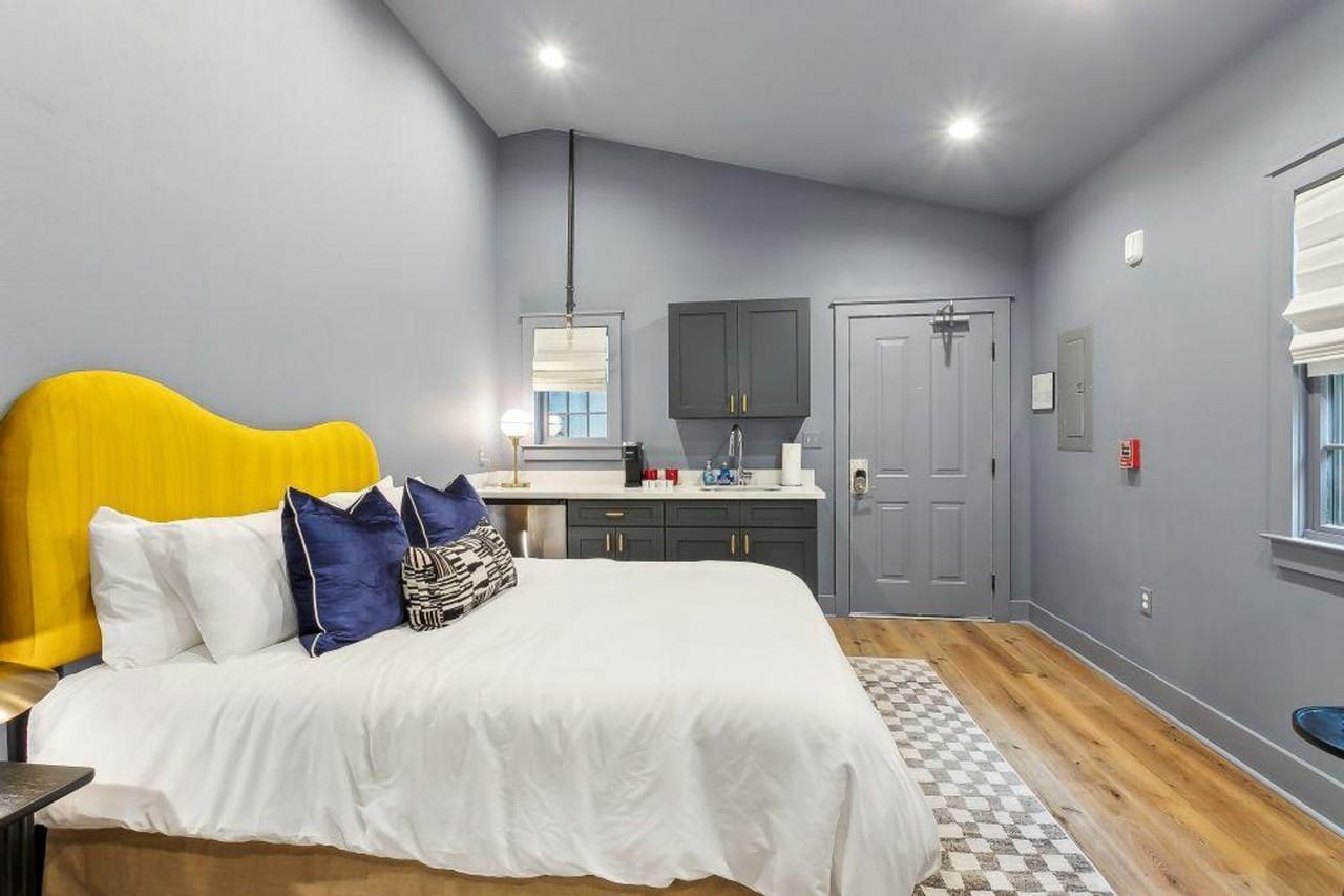 Welcome to The Music Room, a vibrant tribute to New Orleans' musical legacy, where you can feel at home. This room is located in a complex of three buildings securely enclosed behind an iron entry gate, and each guest is provided with a personalized access code. Every unit boasts its own private exterior door entrance with keypad entry and daily access to the shared Lagniappe Lobby. This room features a queen-size bed with stylish linens, a fully stocked kitchenette, and a full bathroom. A cozy seating nook with an armchair and side table offers a relaxing spot for reading or enjoying a drink. Vintage Jazz Fest posters and vinyl records add unique charm. The kitchenette includes a microwave, mini-fridge, sink, and Keurig coffee maker with pods. It is fully stocked with plates, bowls, cutlery, stemware, dish soap, and sponge. Other amenities include high-speed internet, premium essential toiletries, an ironing board, steamer, luggage rack, and a Smart TV. Traveling with a larger group? Reach out to inquire about booking multiple rooms during your stay! This centrally located apartment is just steps from the N Rampart & Esplanade Streetcar stop, a two-block walk to the French Quarter, a four-block walk to Frenchmen Street, and offers direct access down Esplanade to the Fair Grounds. It is also within blocks of many Spring Festivals and all Mardi Gras has to offer. Smoking or vaping on the property, inside or outside, will result in a $250 cleaning fee and charges for any damages incurred. Pets are not allowed on the property, and bringing a pet will result in a $250-$500 cleaning fee and a request to leave. No parties, events, or commercial photography are allowed.