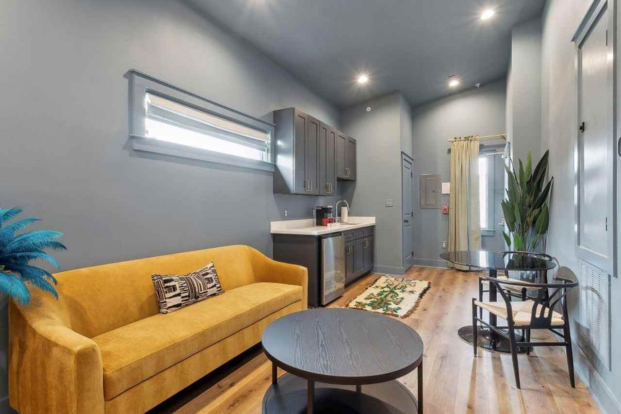 Feel at home in this space for four, offering privacy with an adjoining mirror opposite set-up and a shared main outside entranceway. The World's Fair Room, themed for the New Orleans World's Fair 1984 with a king-size bed, and the Birds of Orleans Suite, with a queen-size bed, are two of nine distinct accommodations with a common Guest Lobby, each featuring luxurious linens and plush pillows. Each suite has its own sofa area to relax and a fully equipped kitchenette with a microwave, mini-fridge, sink, and Keurig coffee maker with pods. The kitchenette is fully stocked with plates, bowls, cutlery, stemware, dish soap, and a sponge. Enjoy high-speed internet, premium essential toiletries, an ironing board, steamer, luggage rack, and a smart TV. Free street parking is available nearby, but please do not park too close to intersections or crosswalks, as this may result in a ticket or towing. This centrally located apartment is just steps from the N Rampart & Esplanade Streetcar stop, a two-block walk to the French Quarter, a four-block walk to Frenchmen Street, and offers direct access down Esplanade to the Fair Grounds. It is also within blocks of many Spring Festivals and all Mardi Gras has to offer. This is a non-smoking property. If you smoke on the property, inside or outside, you will be charged a $250 cleaning fee and any damages incurred. Pets are not allowed on the property. If you are found to have brought a pet you will be charged a $250-$500 cleaning fee and will be asked to leave. The minimum age required to make a reservation is 21 and a state identification card or driver's license copy will be requested upon booking.